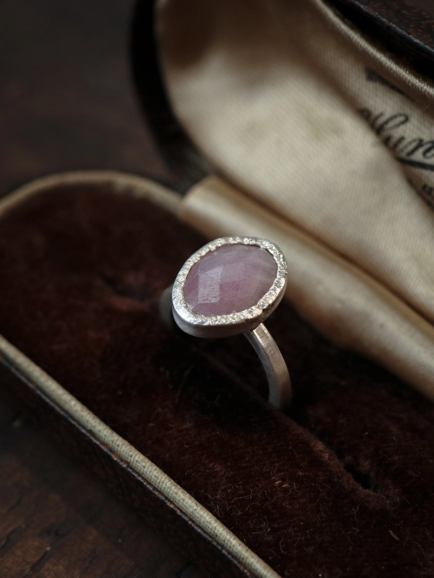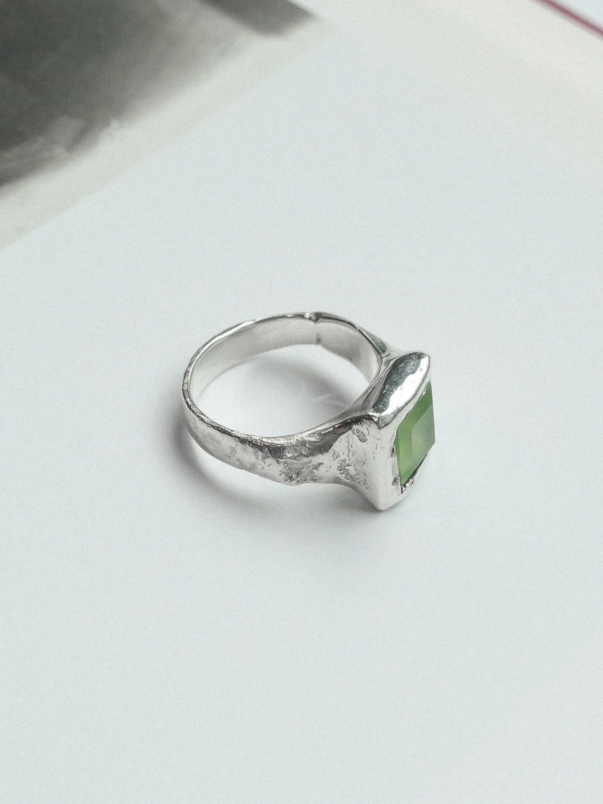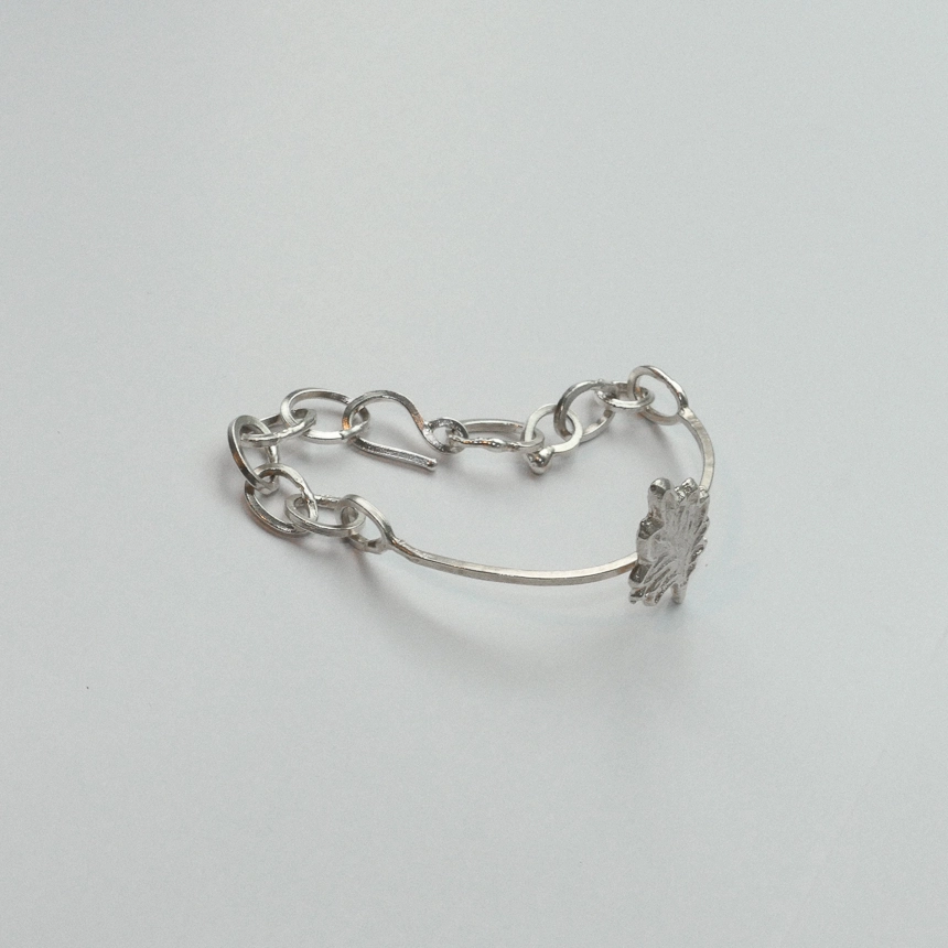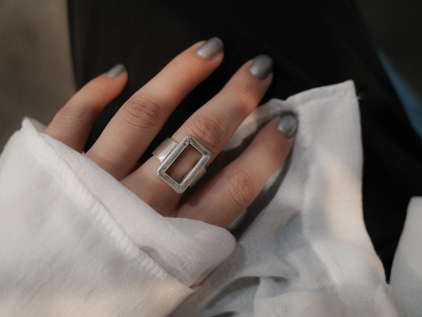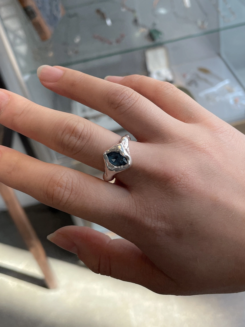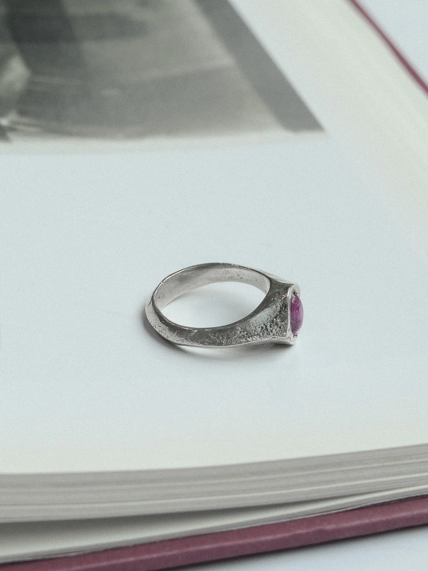 빛을 머금은 듯한 표면 처리와 99.9% 순은을 활용한 강한 존재감, 그리고 직접 조각한 듯한 투박한 디테일이 돋보입니다.