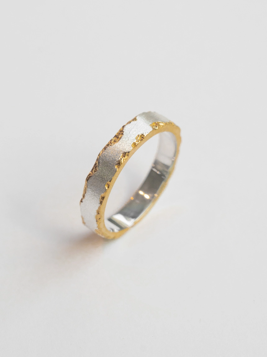 거칠고 불균형하며, 매끄럽게 마감되지 않은 은의 표면.