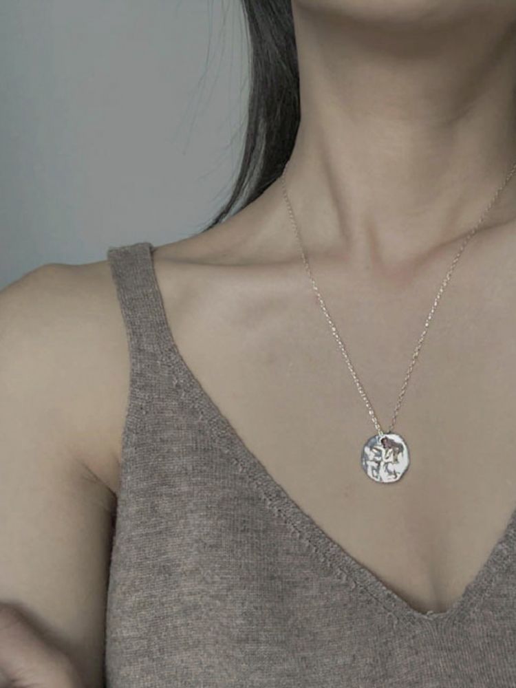 - 코인 자체에 자연스럽게 구멍을 뚫어 체인을 연결한 디자인으로 마치 은 주화를 그대로 체인에 연결한 듯 자연스러운 디테일을 느낄 수 있습니다.
