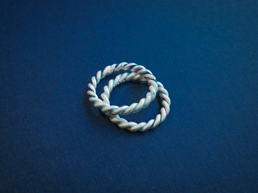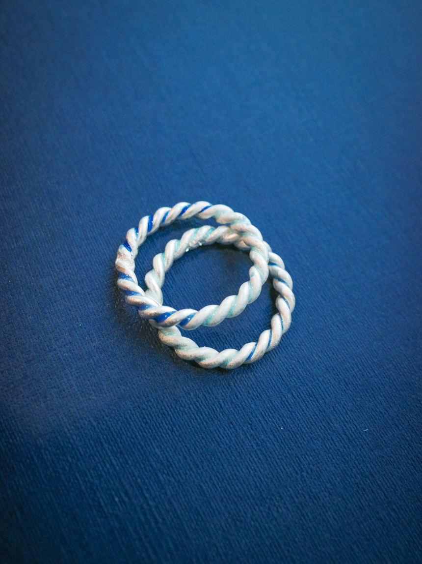 순은으로 꼬인 반지에 칠보로 두 가지 컬러를 낸 반지