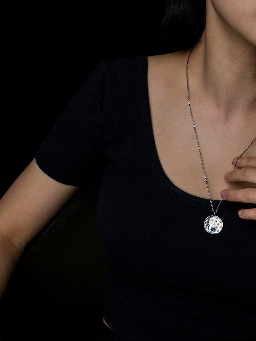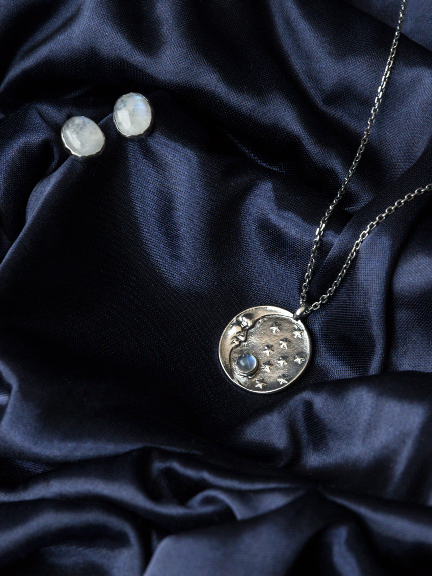 - 달, 별, 문스톤으로 디자인된 코인 목걸이
