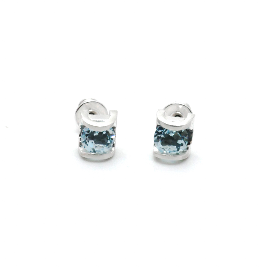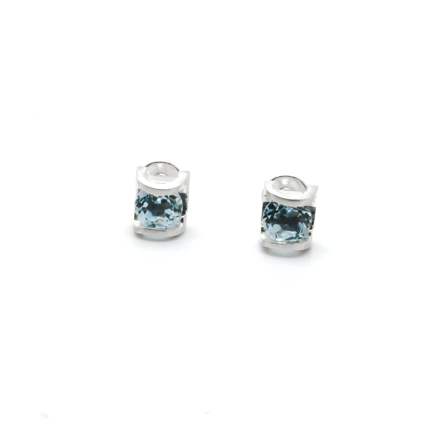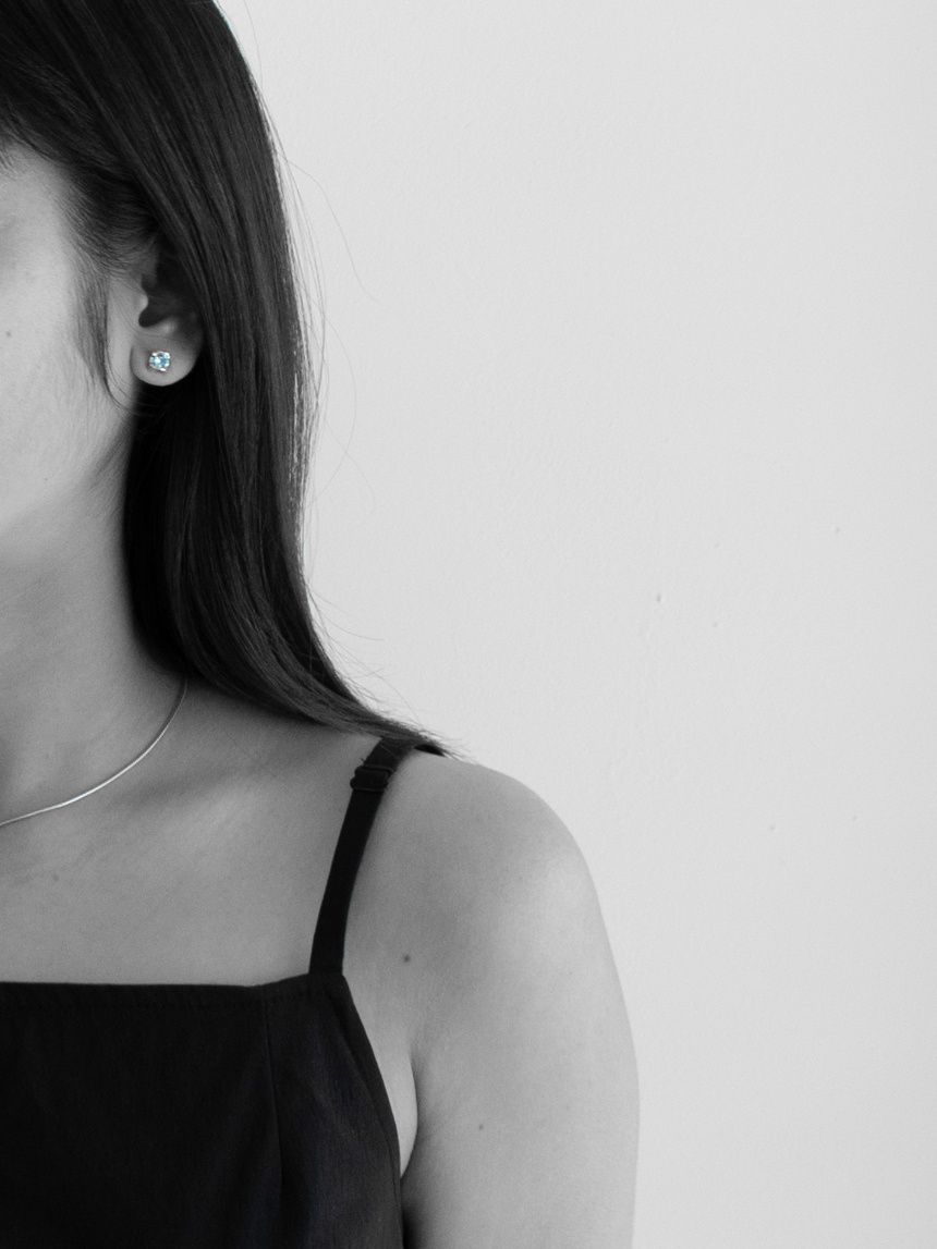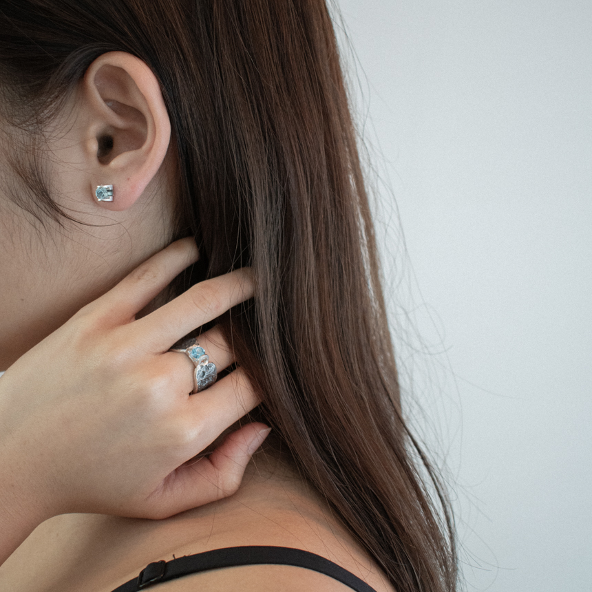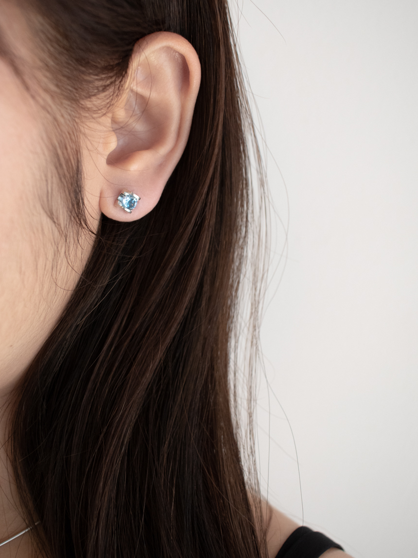 다양한 각도에서 빛나는 컷팅과 푸른 원석의 컬러가 아름다운 스위스토파즈 귀걸이
