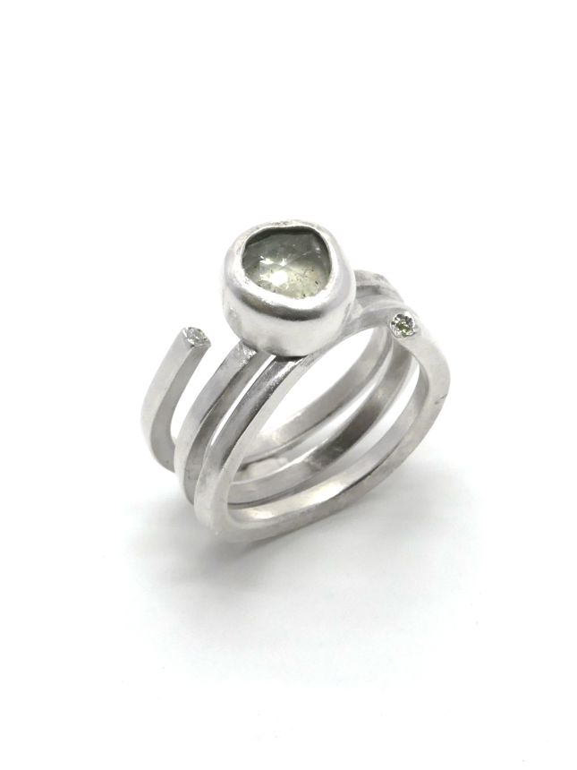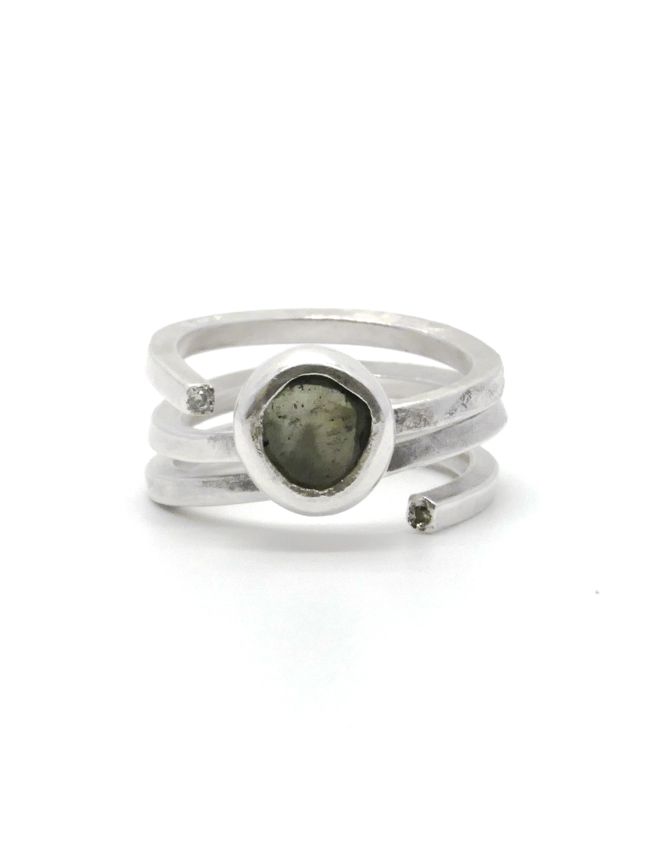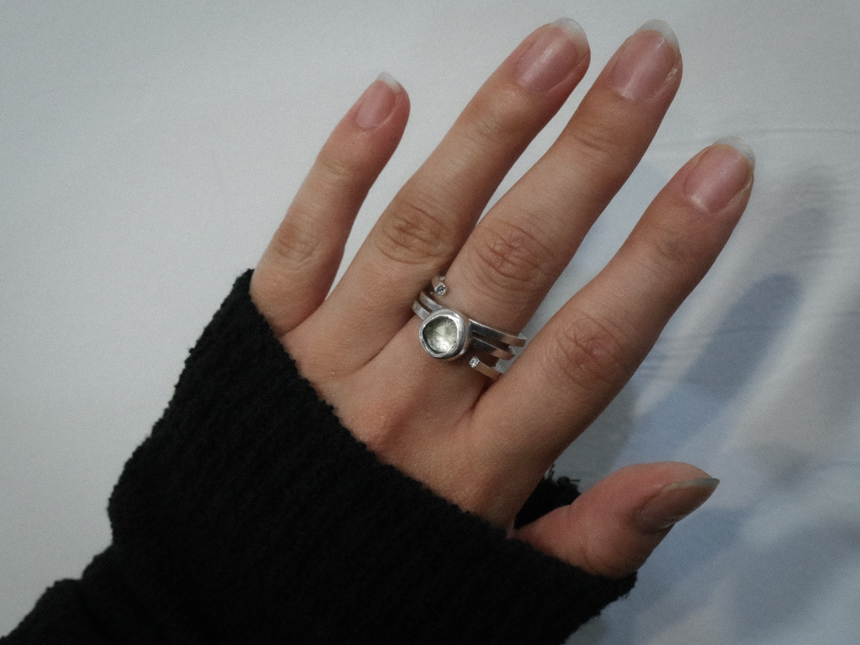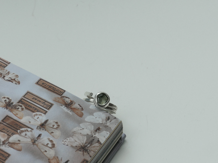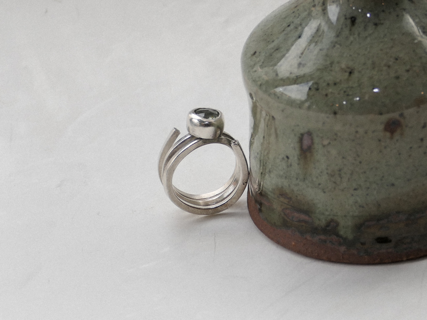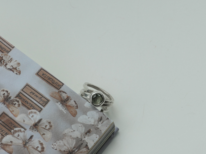 그린수정 원석을 사용해 자연스럽게 은 선을 꼬아 완성된 반지