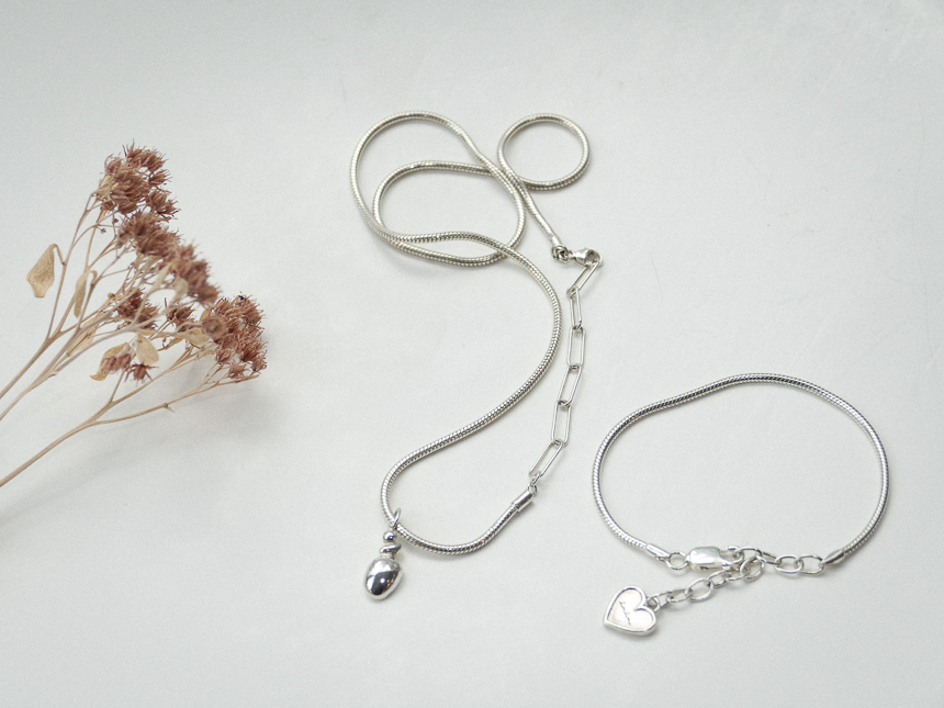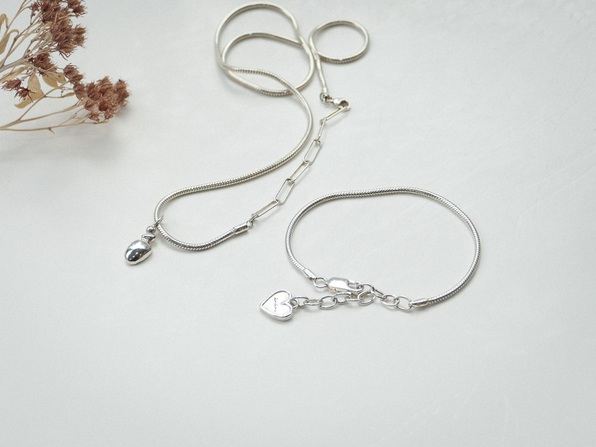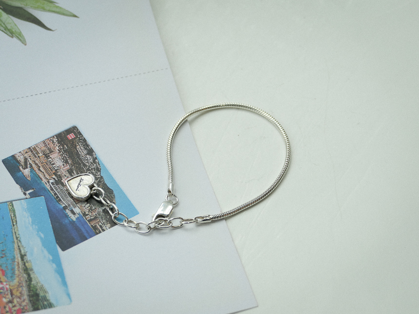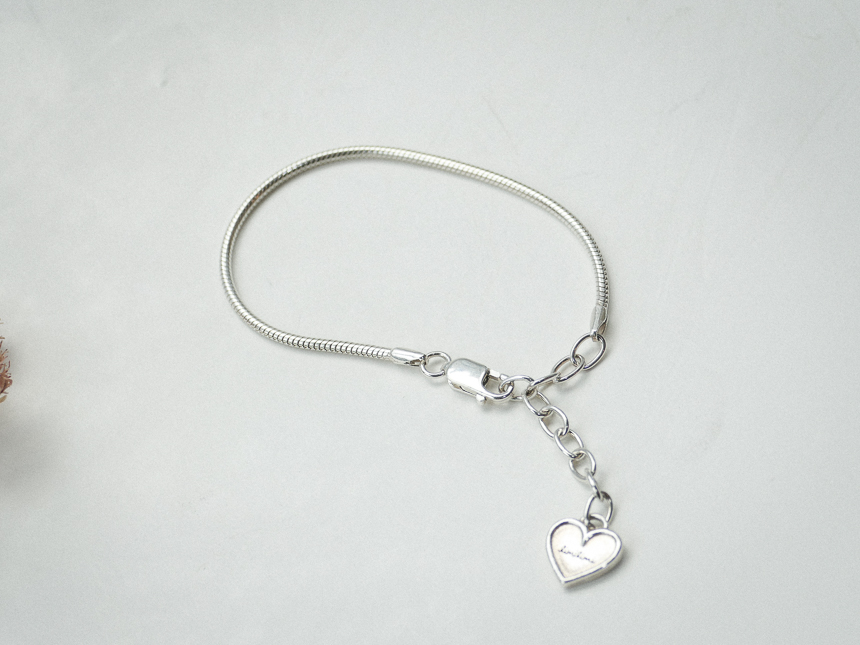 모양잡힌 뱀체인에 하트를 달아 심플한 팔찌