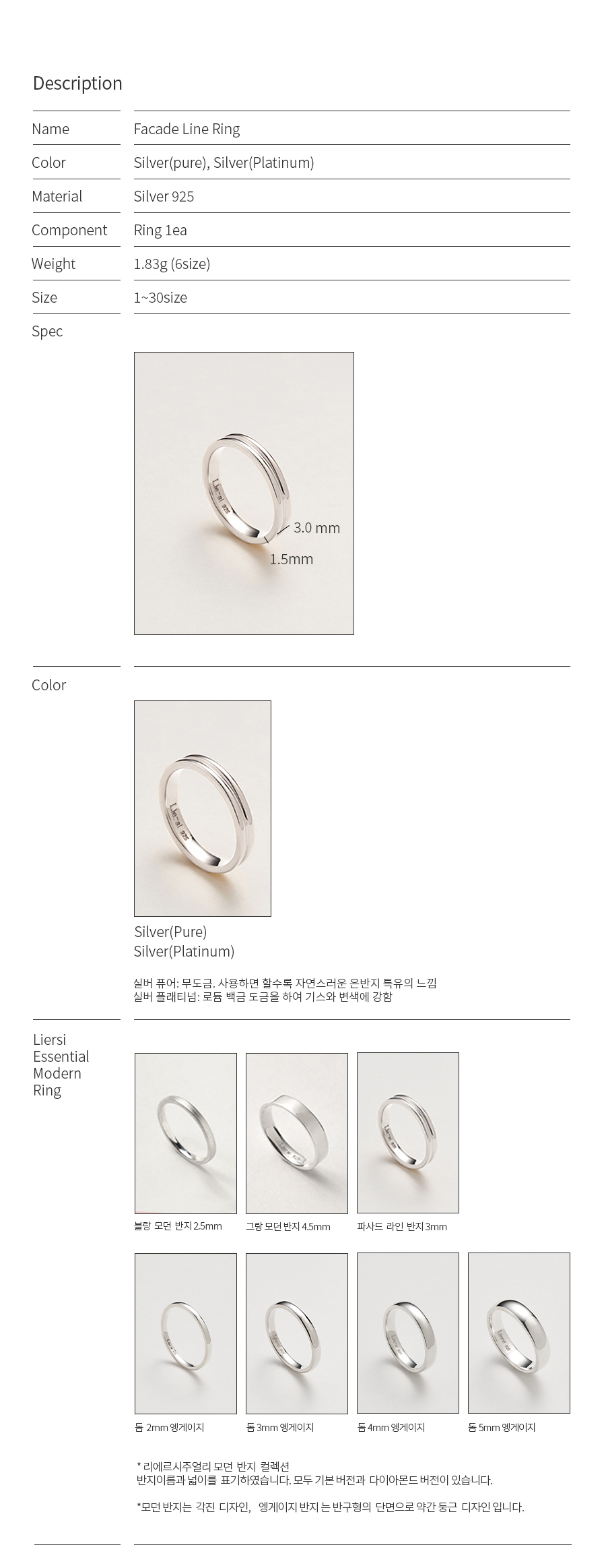 * 사이즈 : 반지대 폭 3mm 윗면 두께 1.5mm