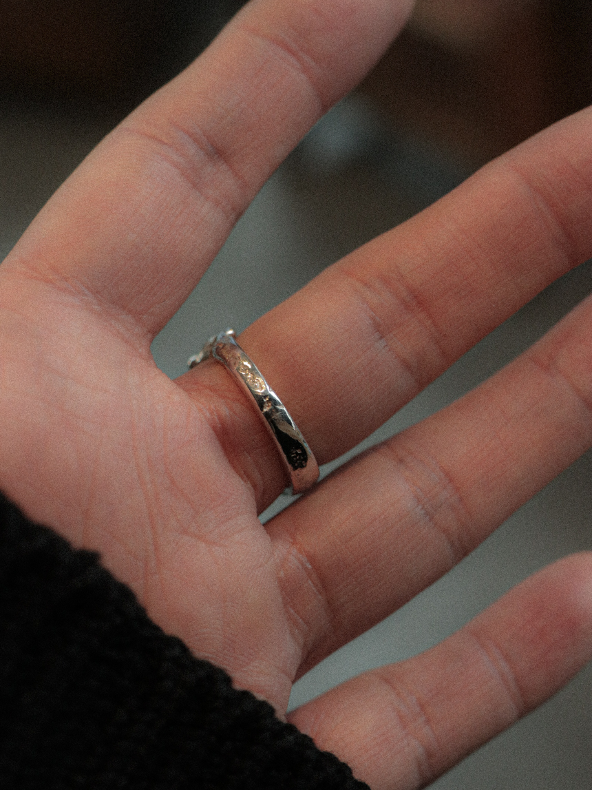 반짝이는 미러광과 마감이 덜 된듯한 러프한 디자인이 공존하는 매력적인 링