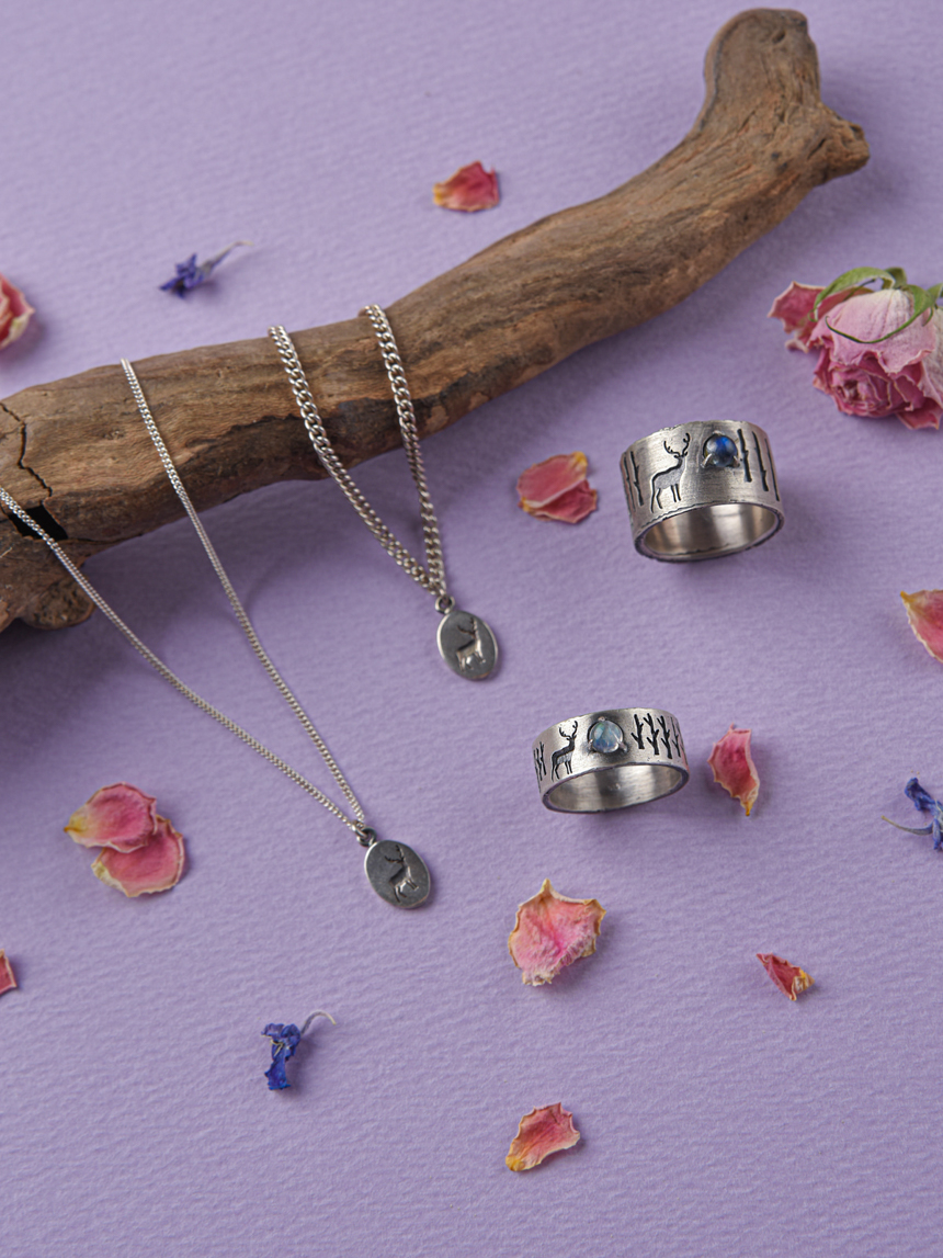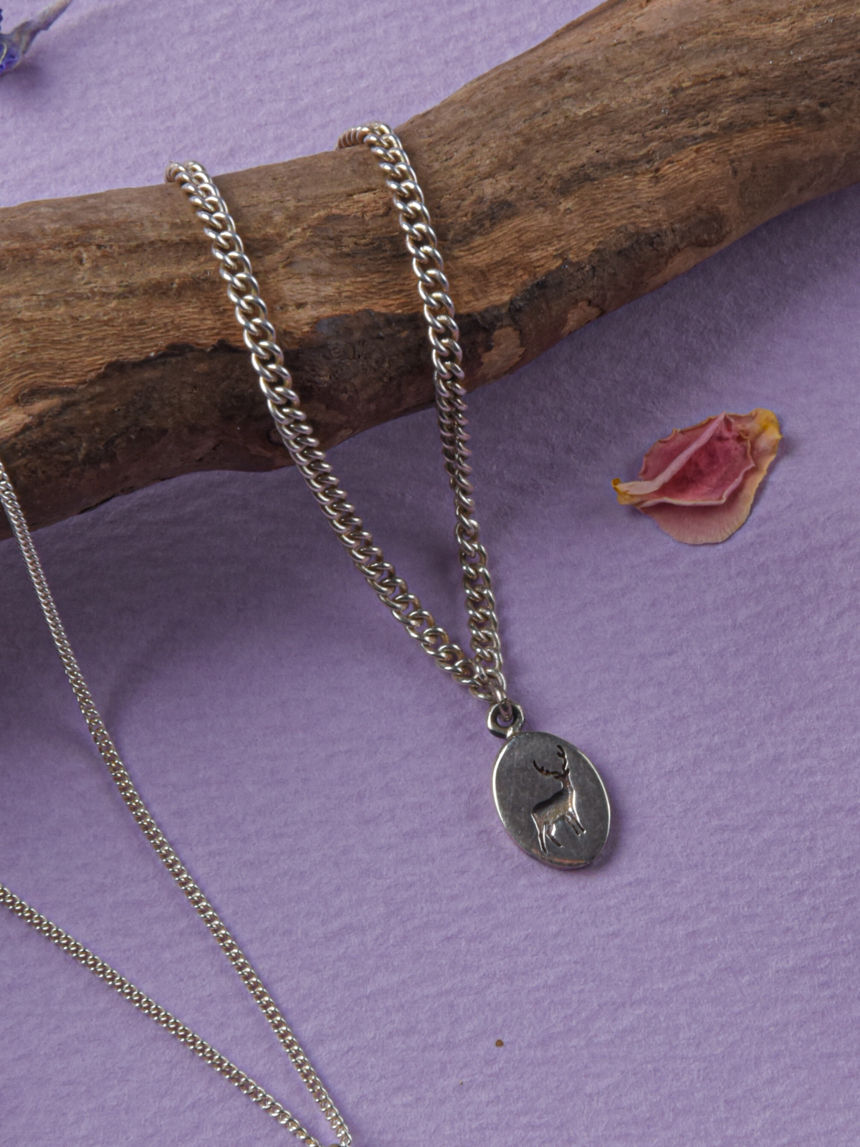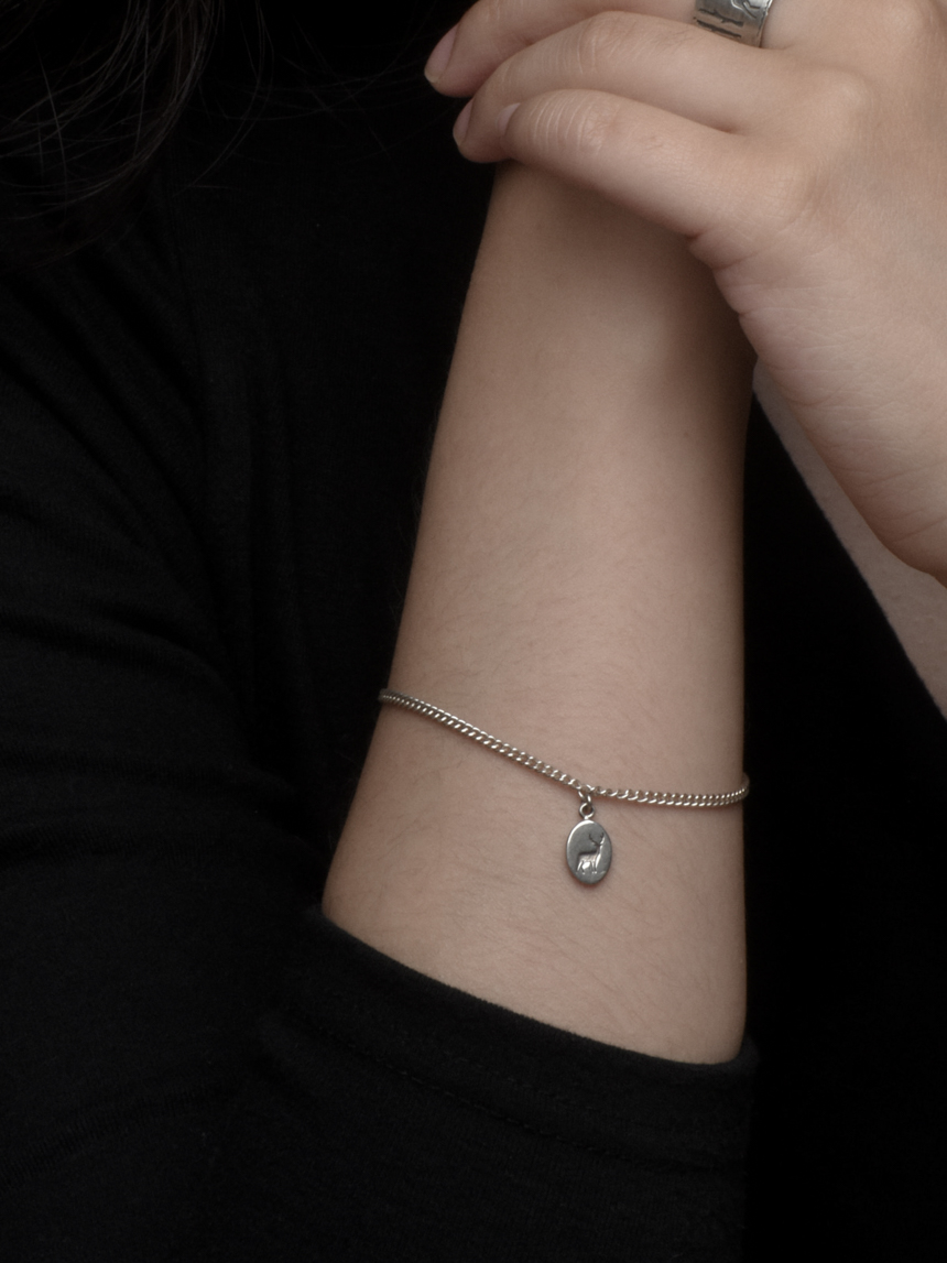 - 작은 팬던트에 사슴이 각인된 사슴 팔찌