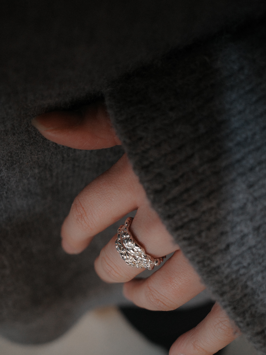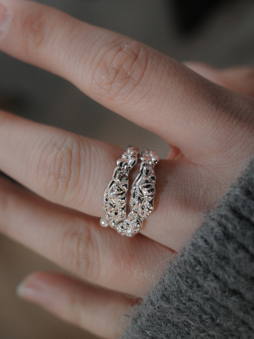 반지대의 모든 부분에 주름디테일이 들어있는 반지.
