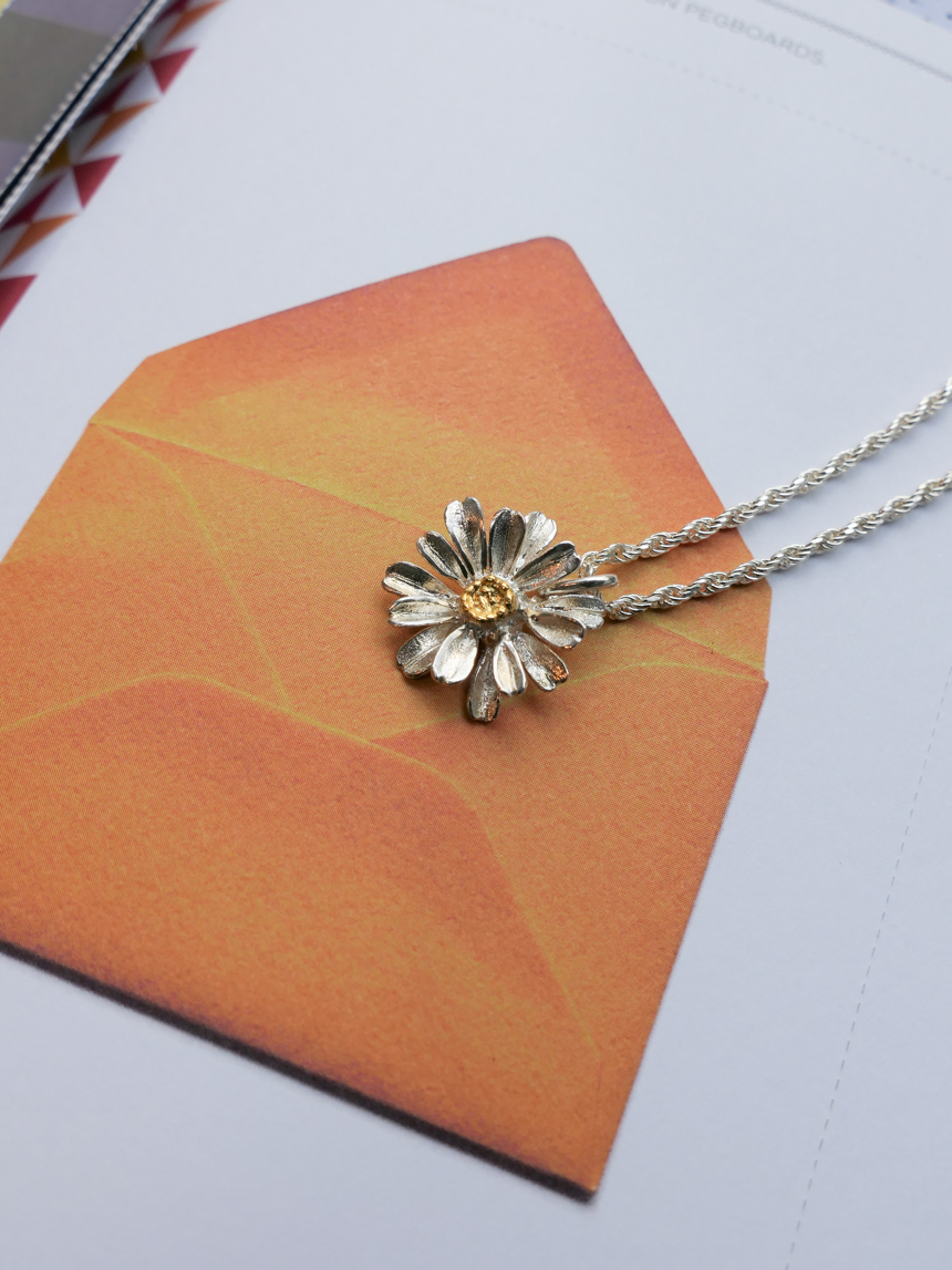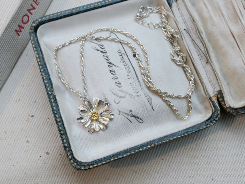 데이지 팬던트는 중앙에 작은 골드 도금 포인트로 화사함을 더하며,