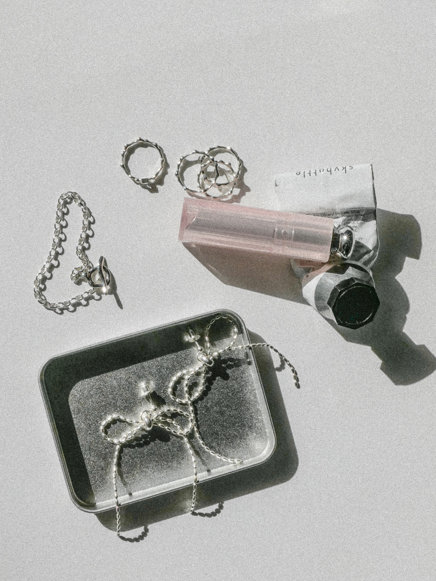 • 향수, 스프레이, 로션 등 화학 제품을 모두 사용한 후 마지막에 실버 제품을 착용하세요.