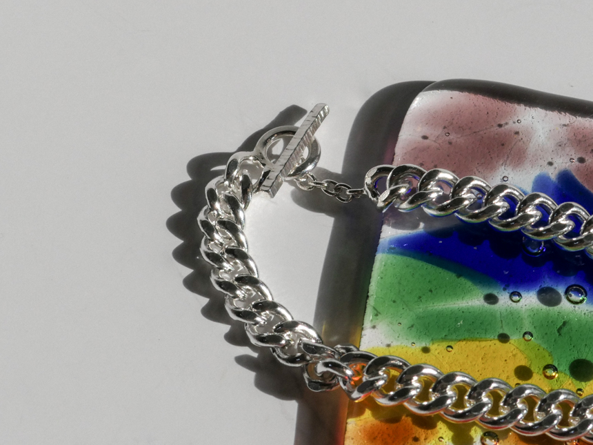 데일리하게 착용하는 쿠반체인 팔찌를 토글바 잠금으로 디자인 포인트를 주었습니다.