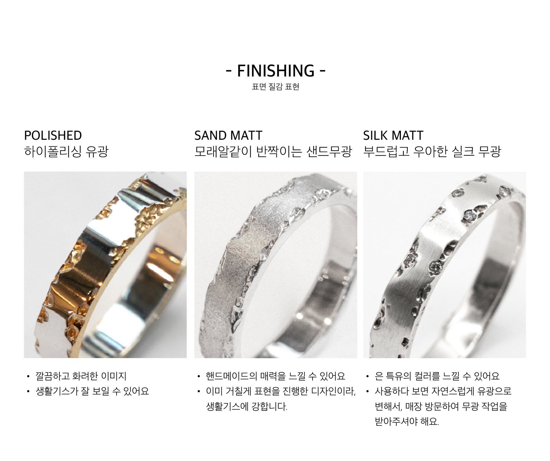 깔끔한 폴리싱과 군더더기 없는 라인으로 심플하면서도 고급스러워요.