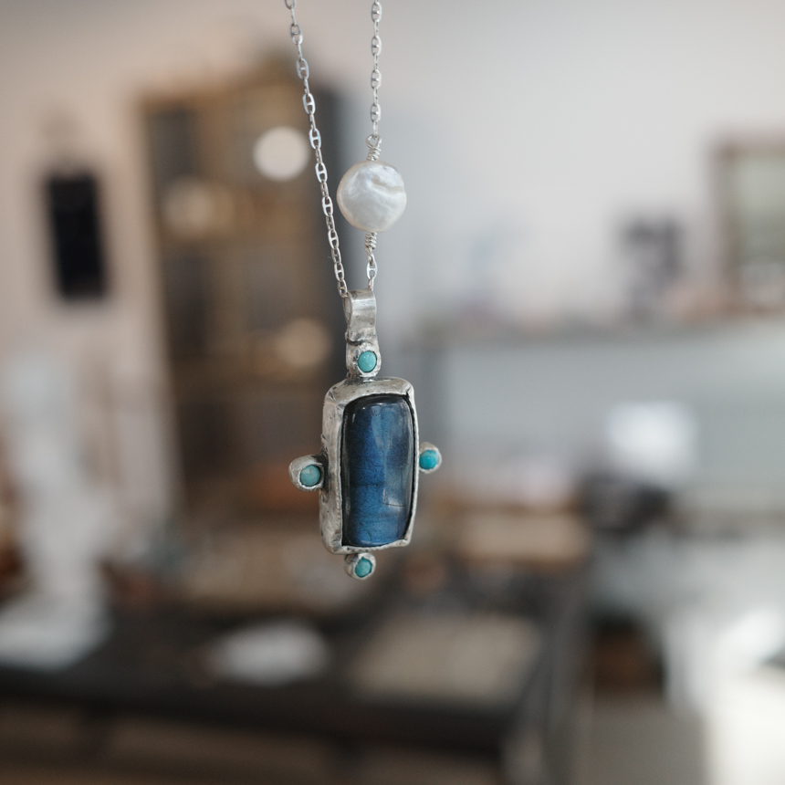 소재 : 925실버, 터키석, 래브라도라이트, 못난이진주