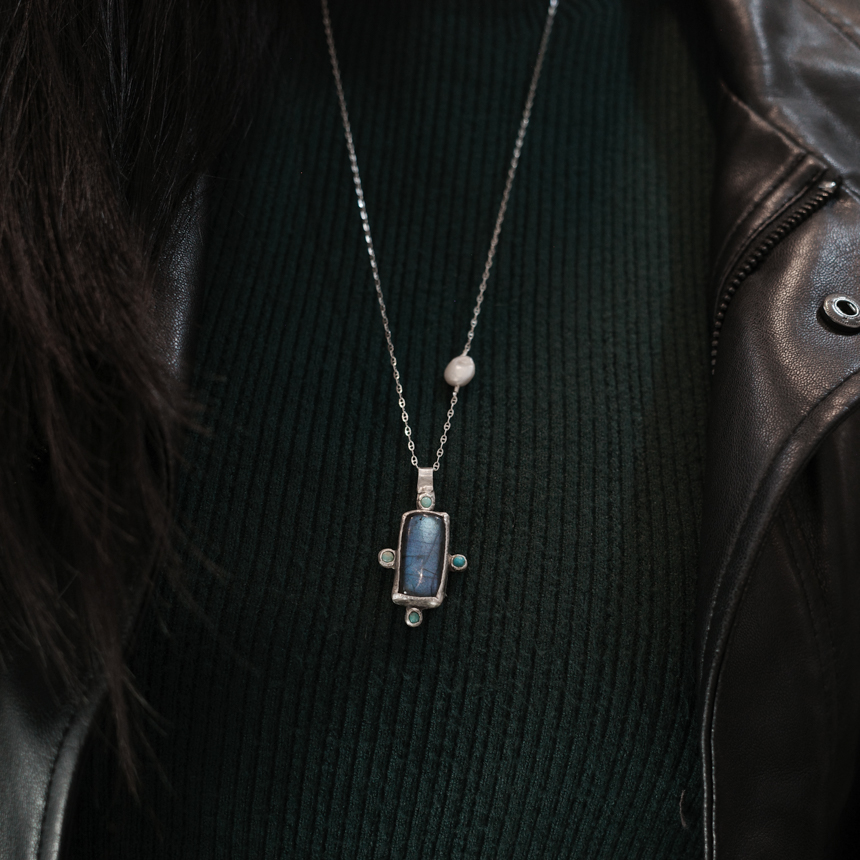 래브라도 라이트, 터키석이 무게감있게 셋팅된 목걸이