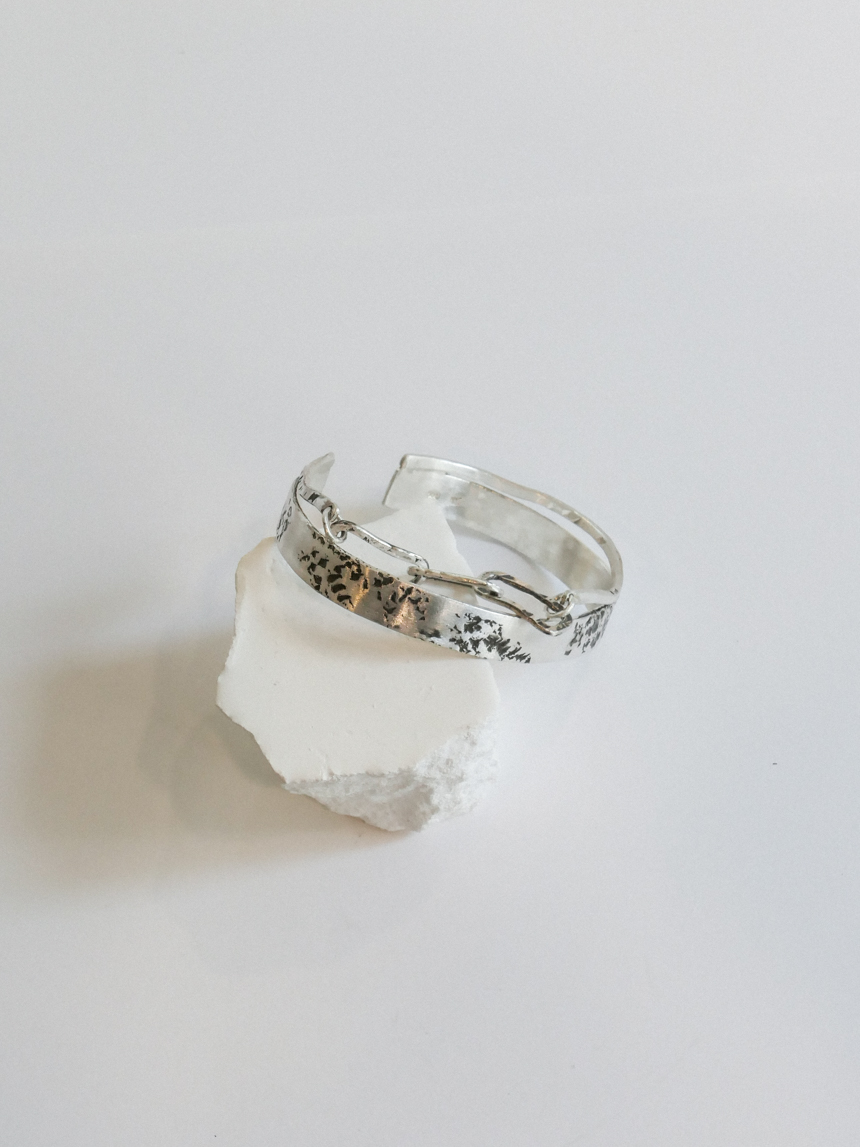 단단한 순은 소재 위로 새겨진 생동감 있는 질감은 장식적 요소 없이도 존재감이 확실한 디자인입니다.