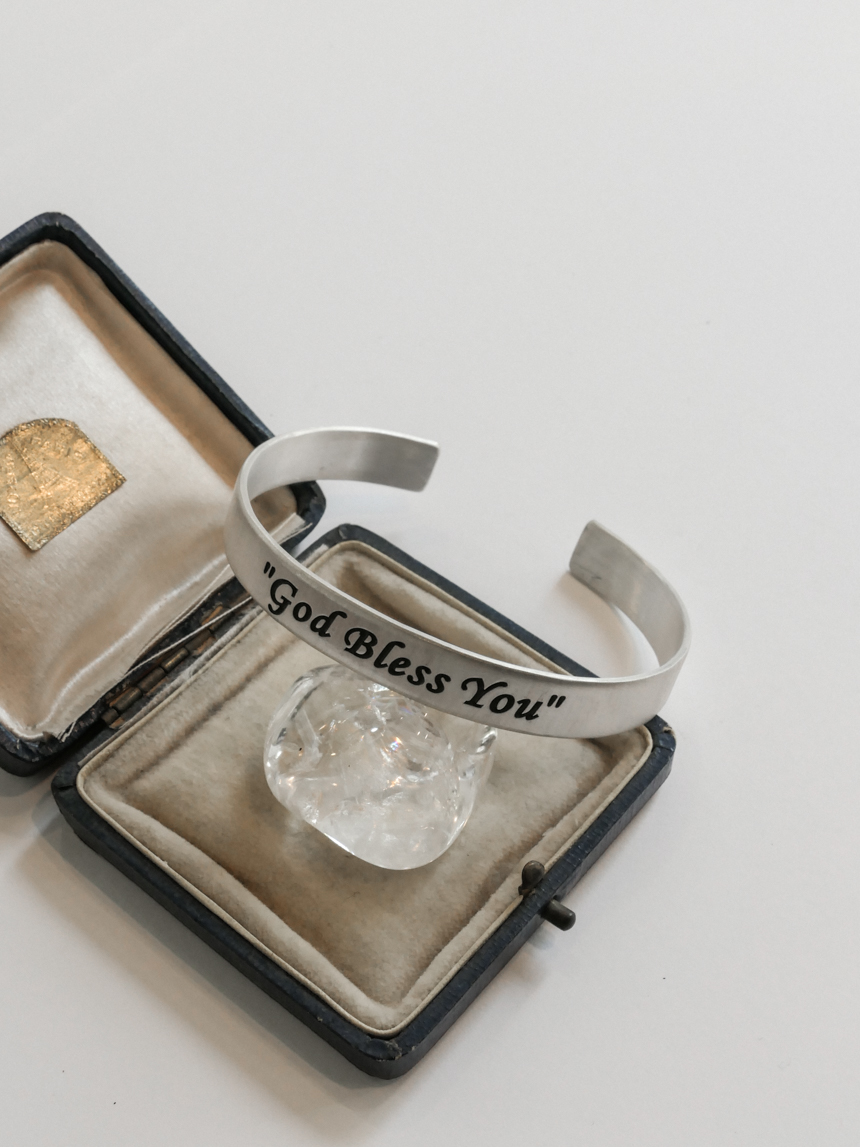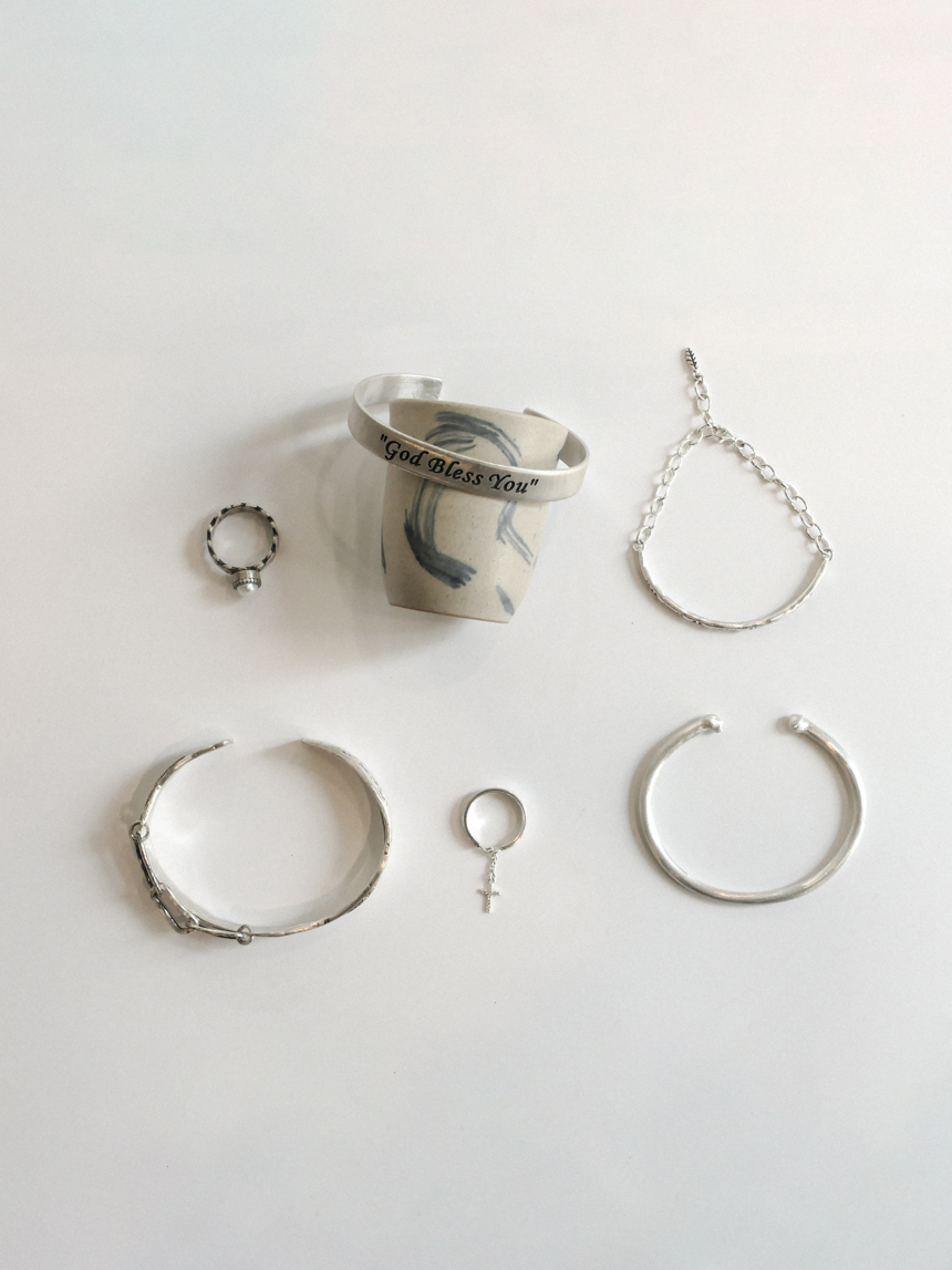 99.9% 순은으로 제작되어 단단한 존재감을 전달하며, 표면에 깊이감 있게 새겨진 “God Bless You” 문구는선물용 또는 데일리 심볼로 착용하기 좋은 정서적 디테일을 완성합니다.