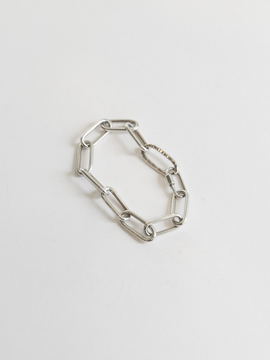 간결한 직선과 반복되는 볼륨, 볼드한 직사각 체인이 연결된 925실버 체인 팔찌입니다.