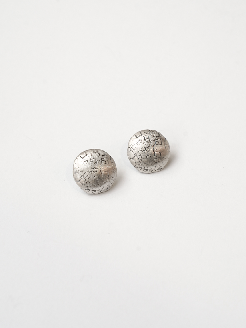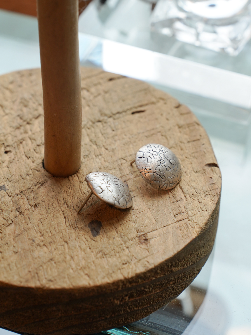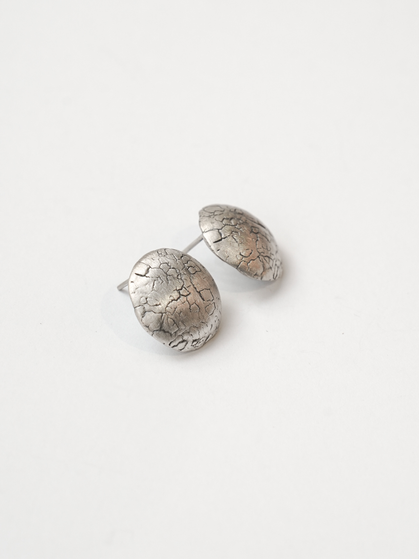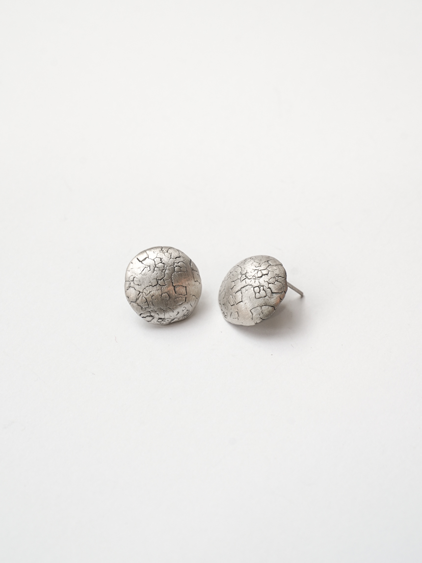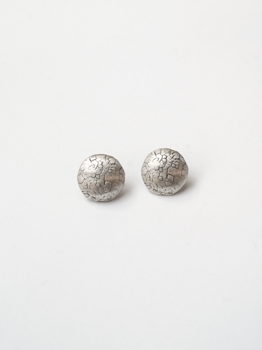 불규칙한 크랙 텍스처를 입힌 돔 형태의 스터드 이어링입니다.