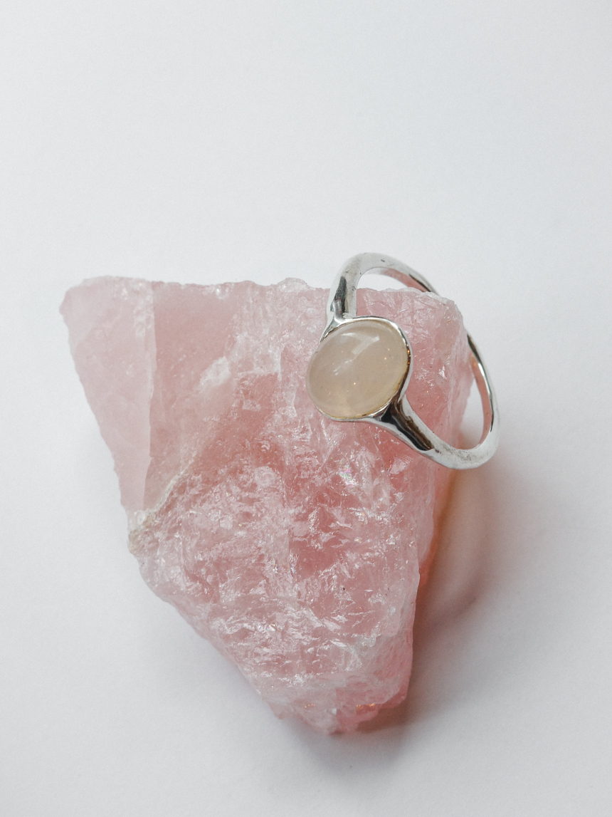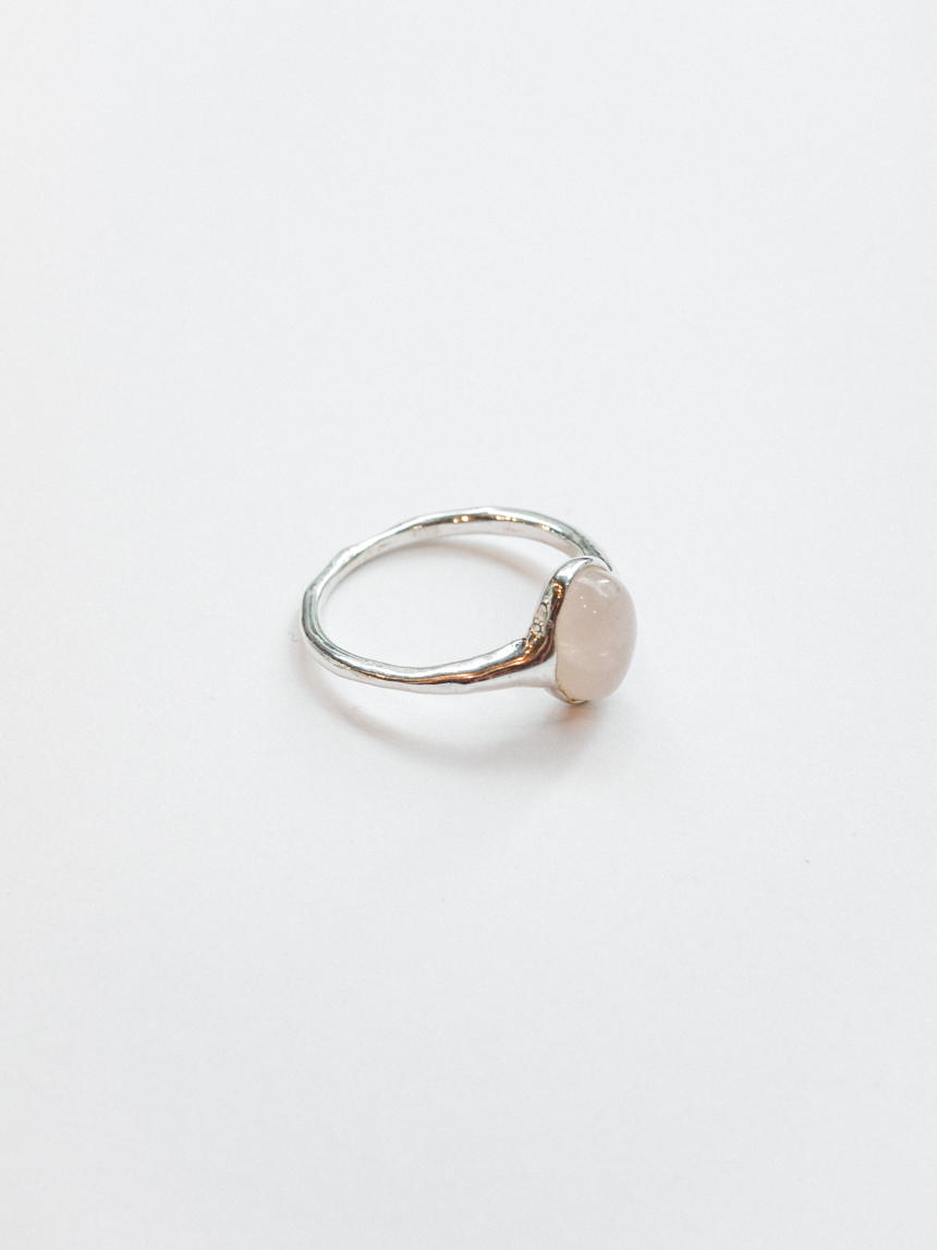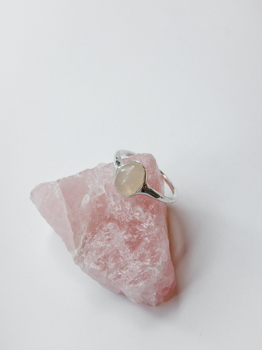 은은한 반투명 핑크빛의 천연 로즈쿼츠를 세팅한 반지