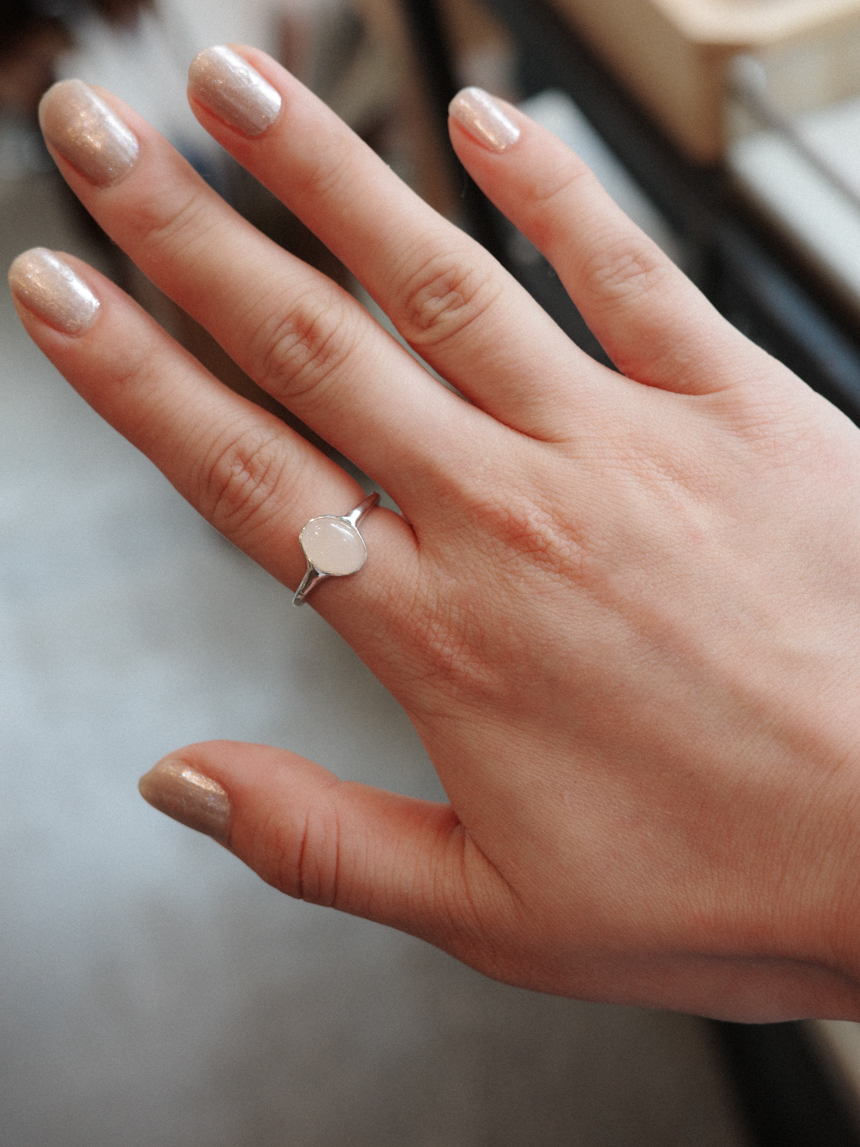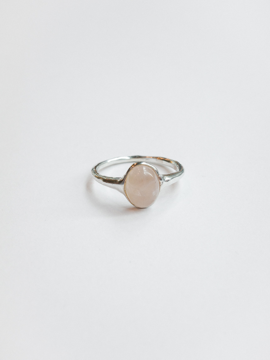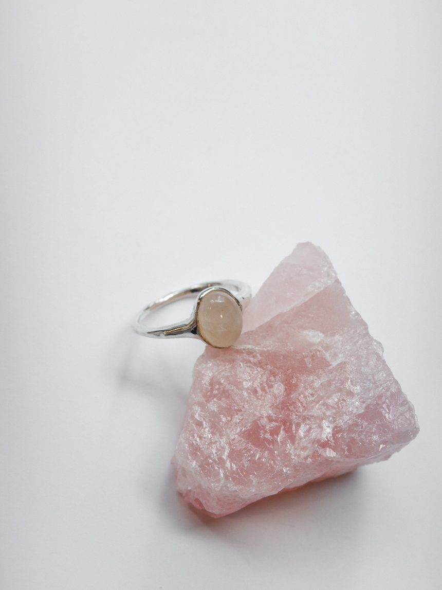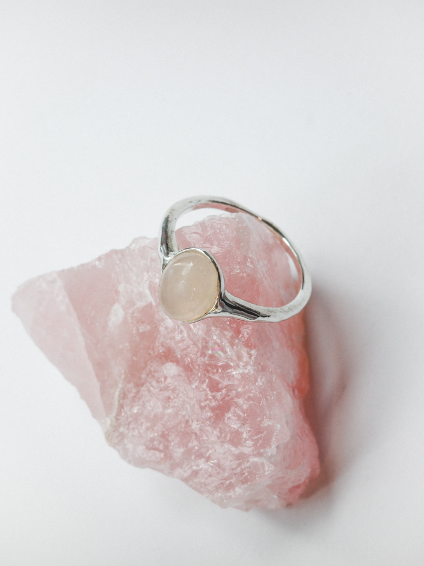 은은한 반투명 핑크빛의 천연 로즈쿼츠를 세팅한 반지