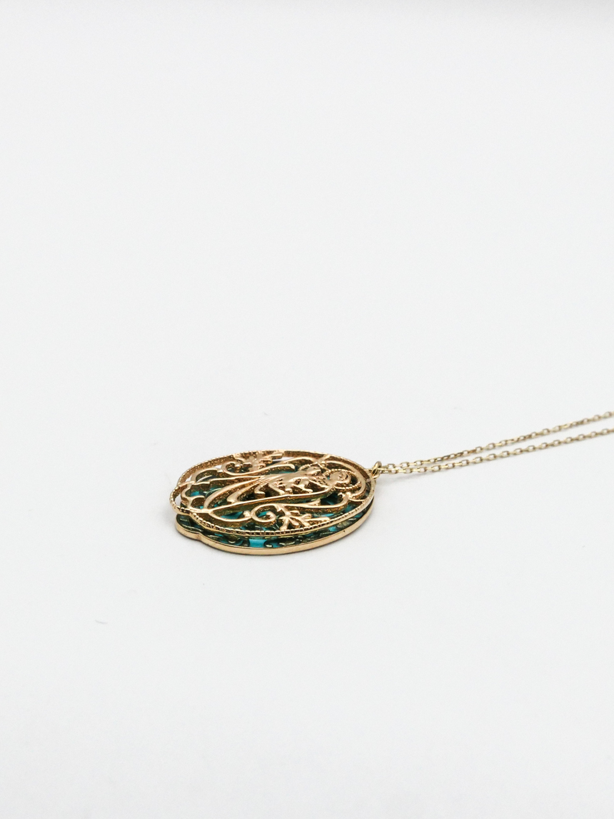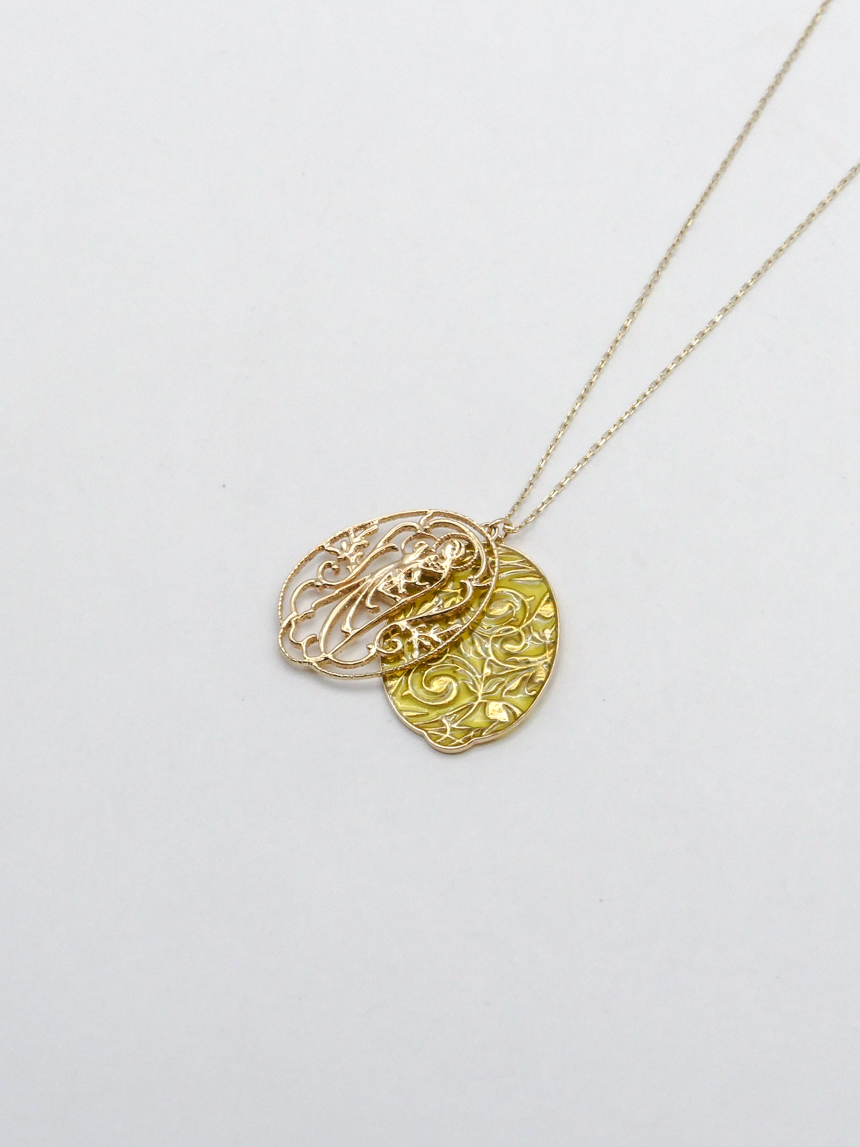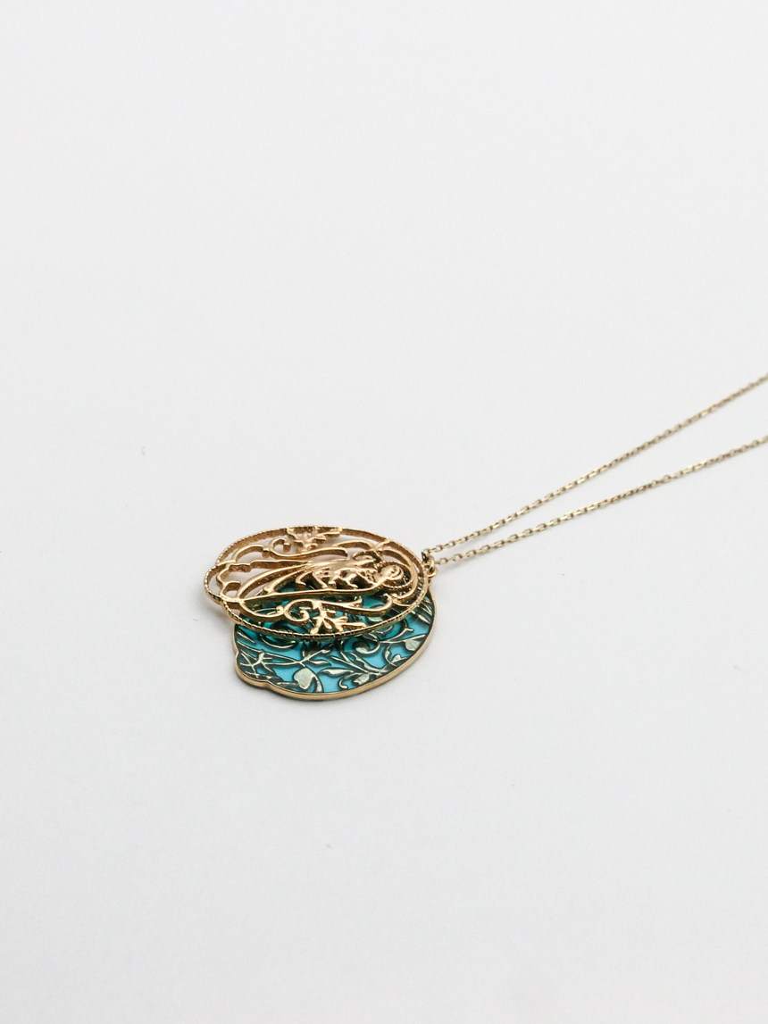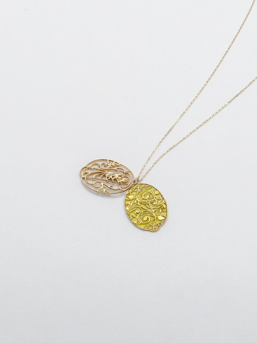 겹쳐진 골드 프레임과 에나멜 컬러가 조형미를 완성하는 cheravir의 오벌 팬던트 목걸이