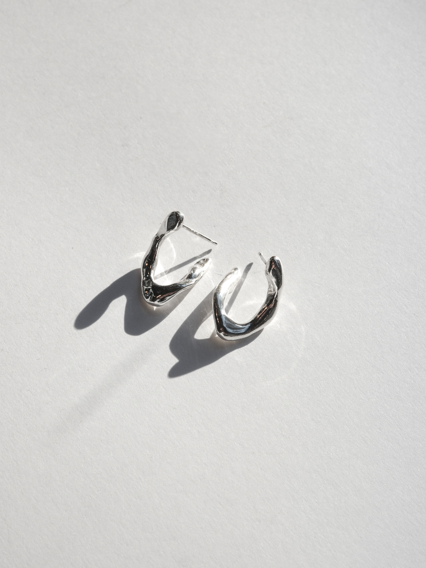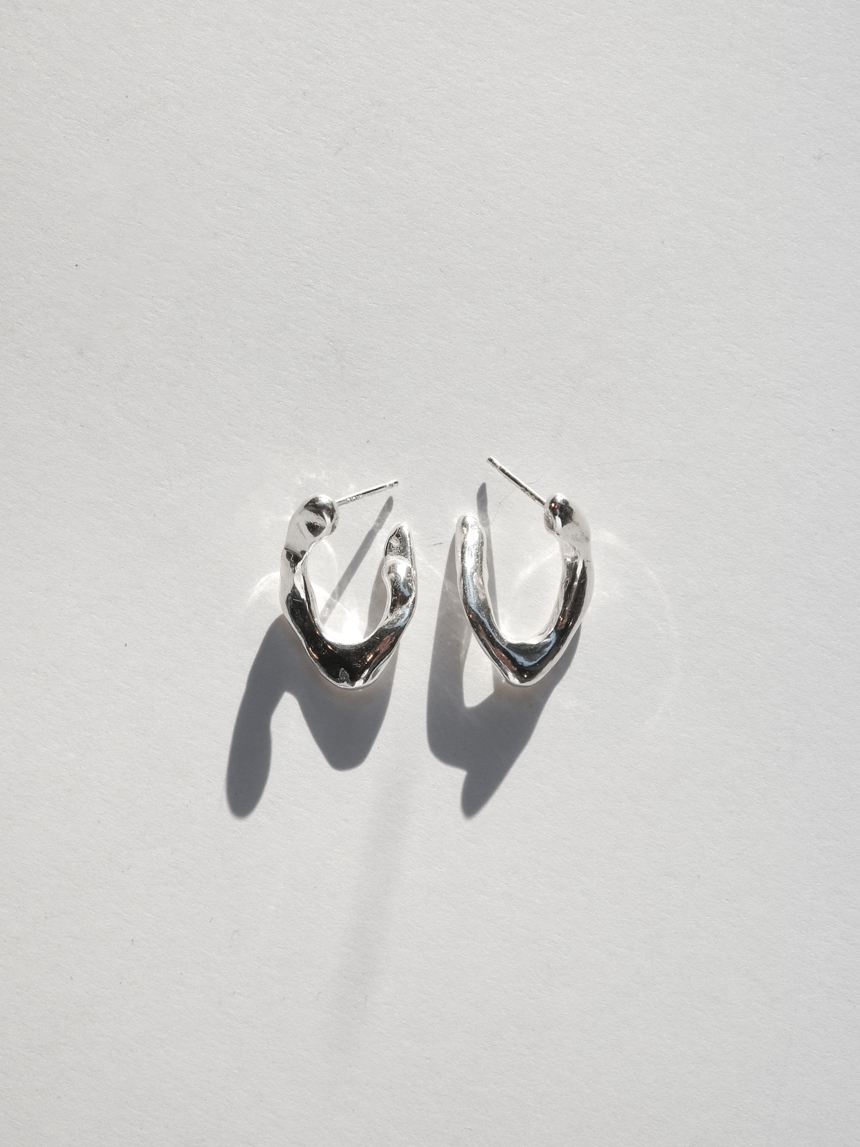 귀를 타고 흐르는 듯한 아웃라인이 매력적인 아이템. 귀걸이 고광택 연마를 통해 표면에 생동감 있는 반사가 일어나며, 볼륨감이 더 강조됩니다.