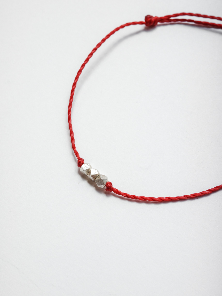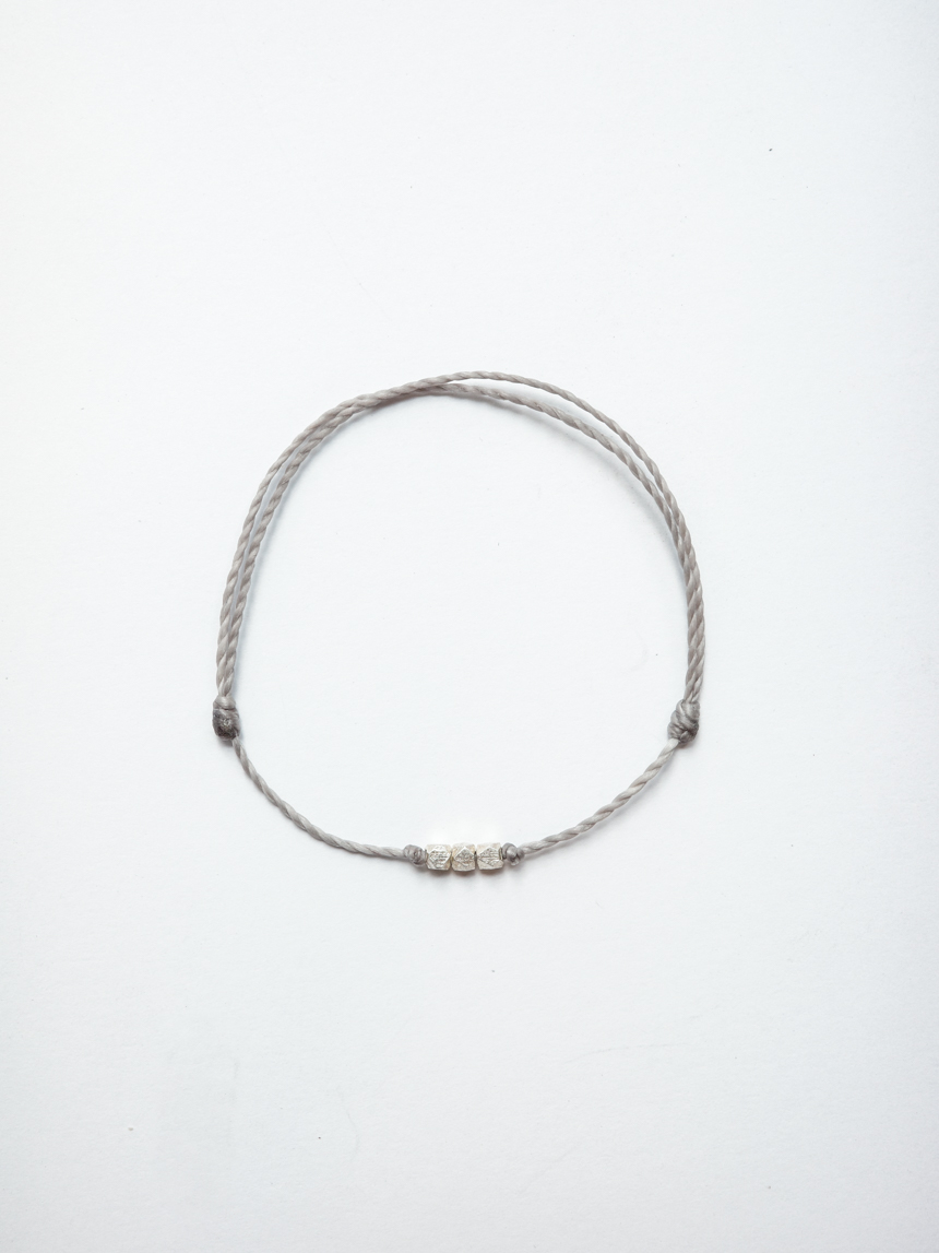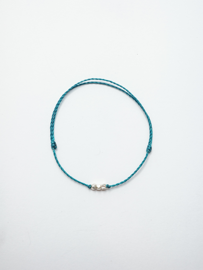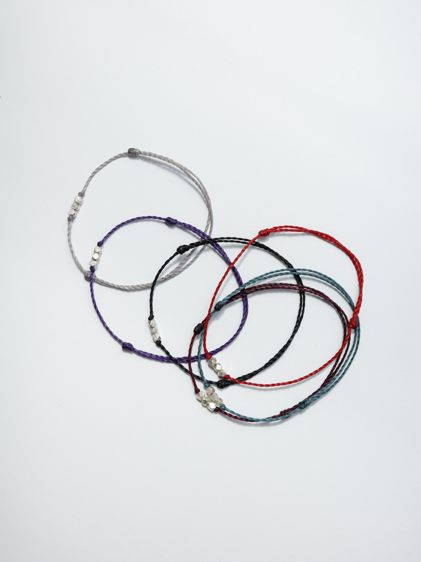 내구성이 높은 왁스 코팅 초실, 그리고 팔찌 중심에는 실버 비즈가 균형 있게 배열되어 있습니다.
