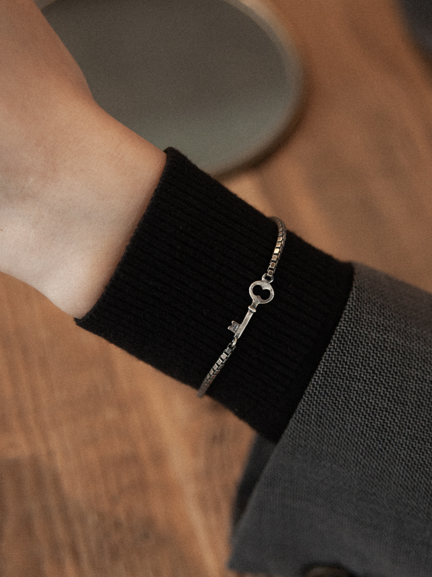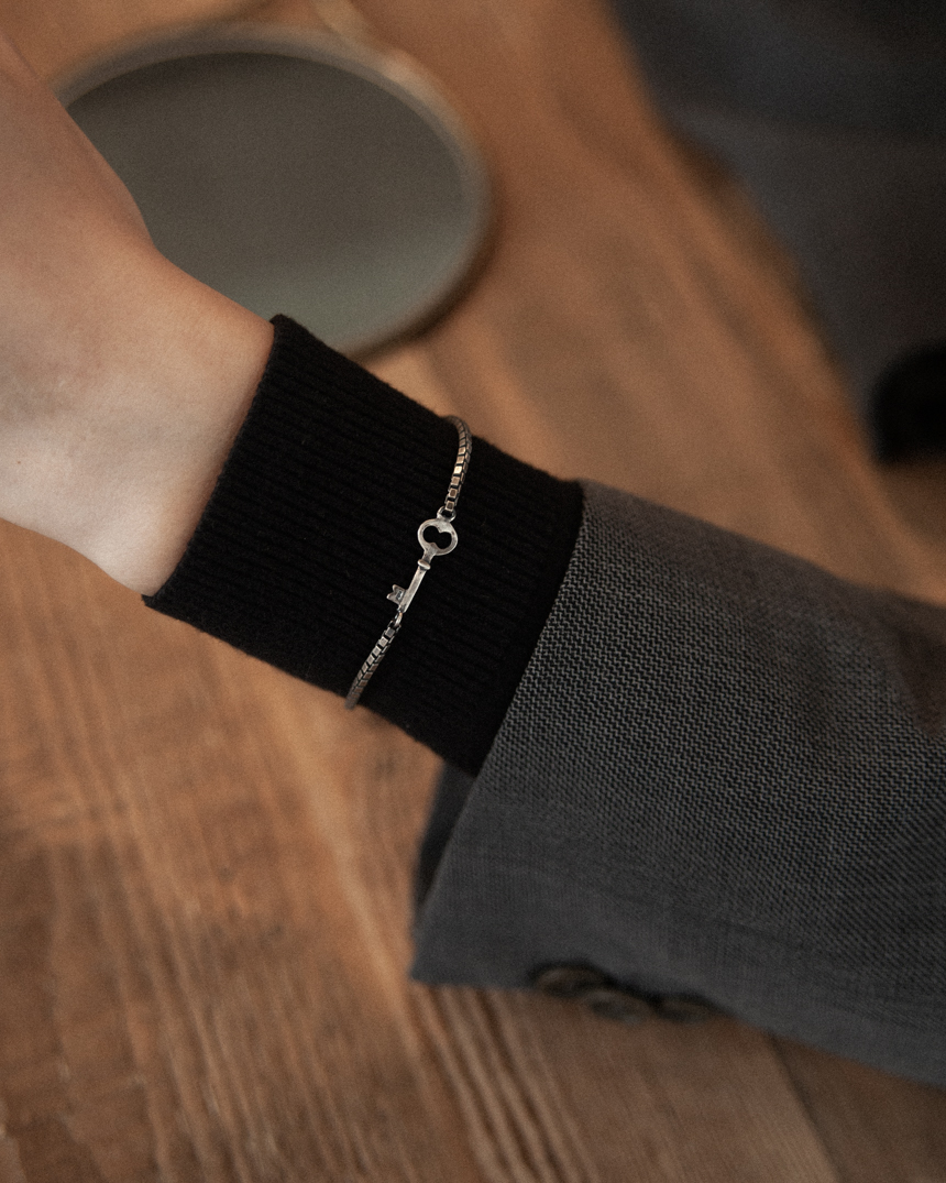 일상에서 간단히 착용할 수 있는 실버 주얼리로, 데일리한 디자인으로 남녀 모두에게 어울립니다. 열쇠가 가진 좋은 의미를 전달하는 선물용으로도 좋아요.