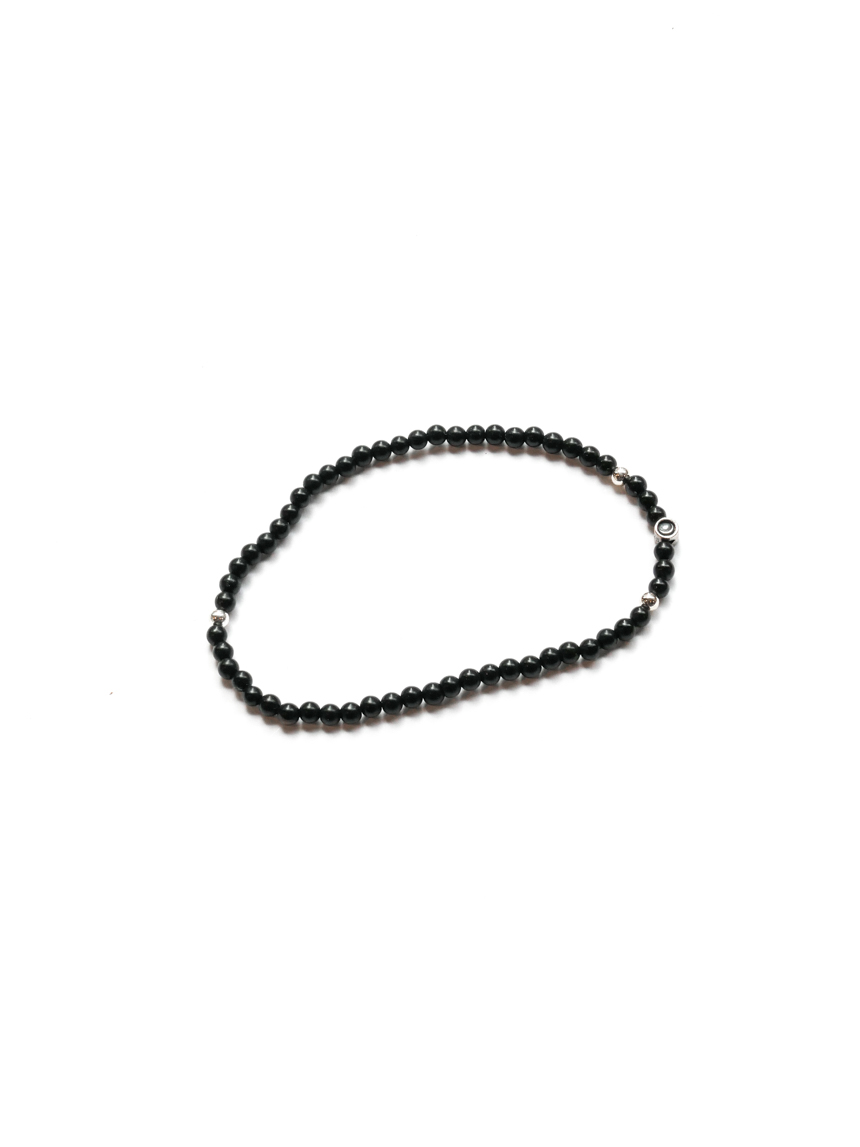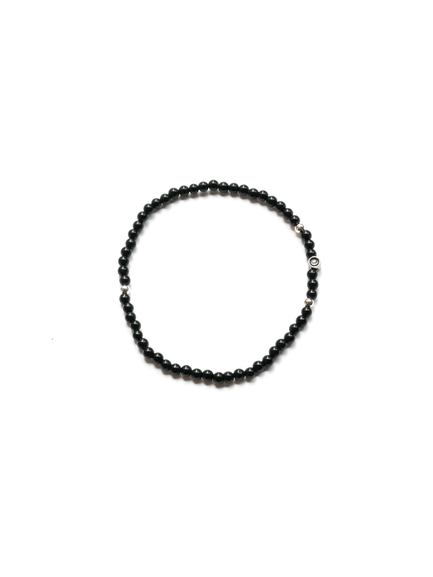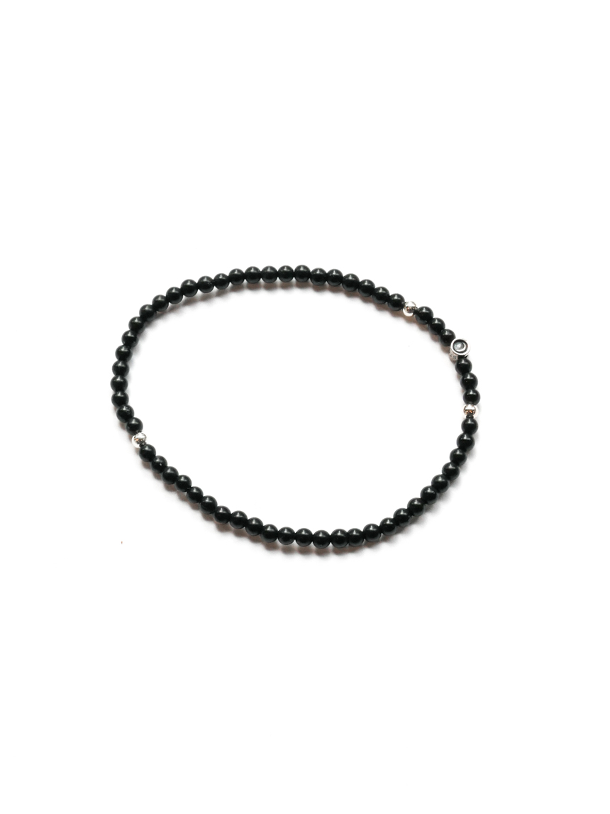 작은 오닉스와 미니 달 참을 연결해 만든 유기적인 팔찌.