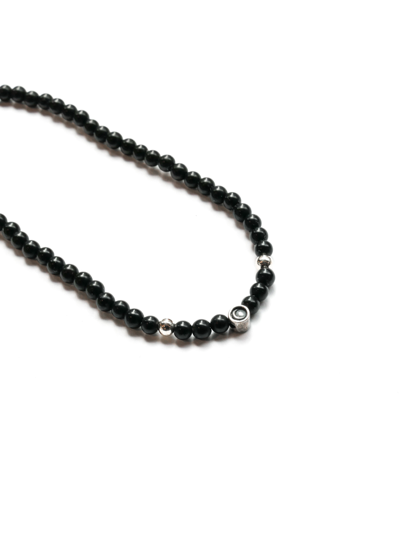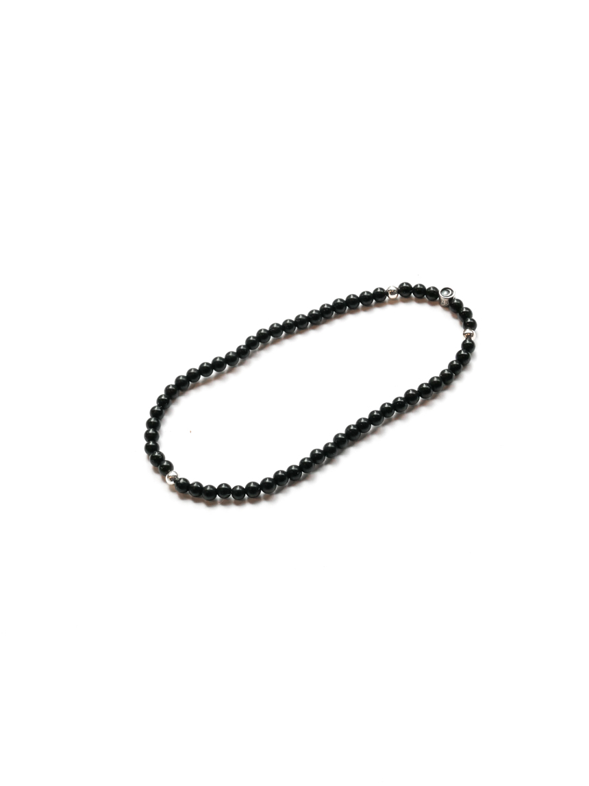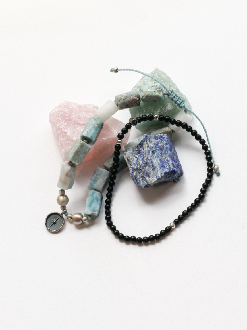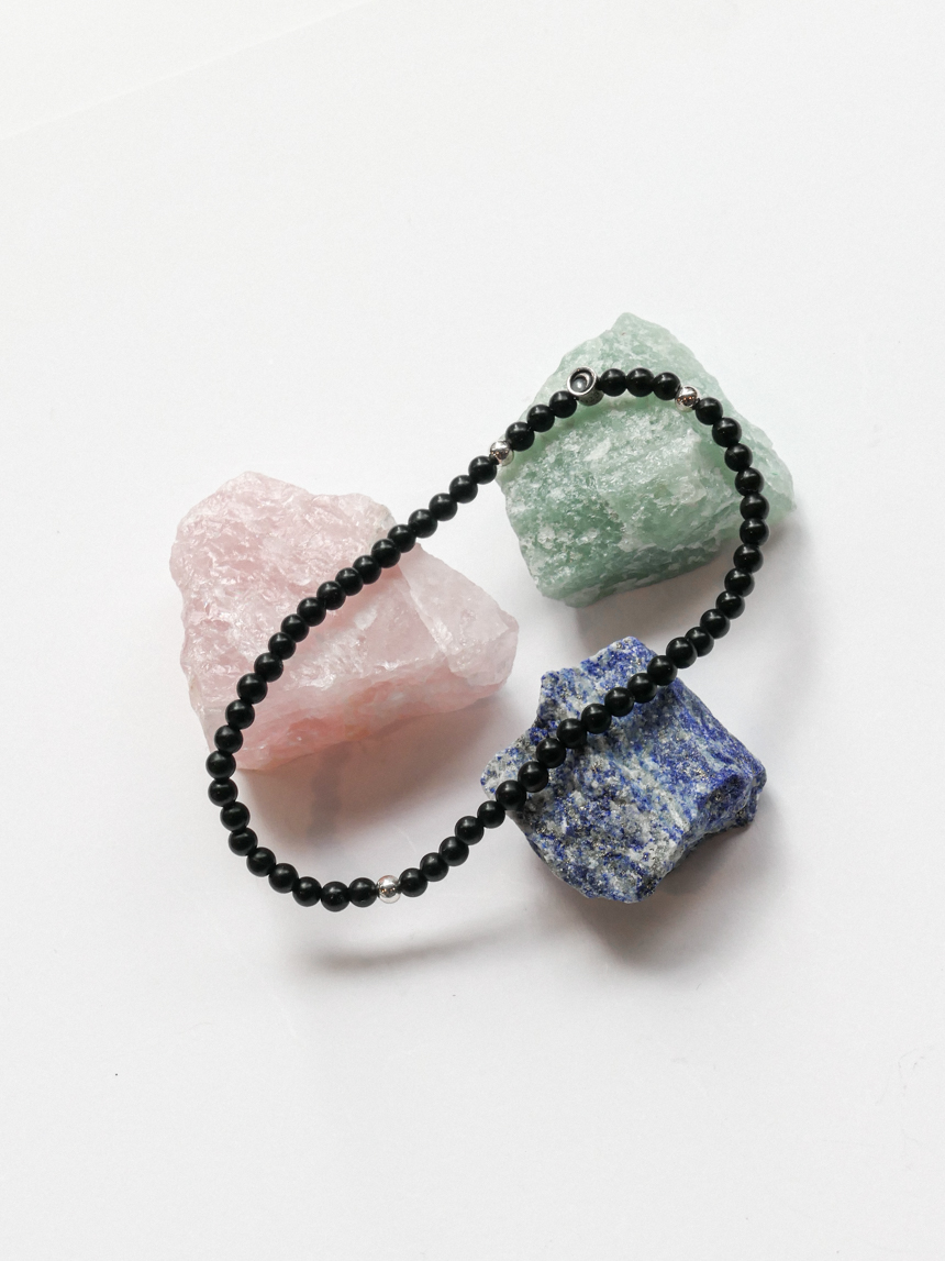 작은 오닉스와 미니 달 참을 연결해 만든 유기적인 팔찌.