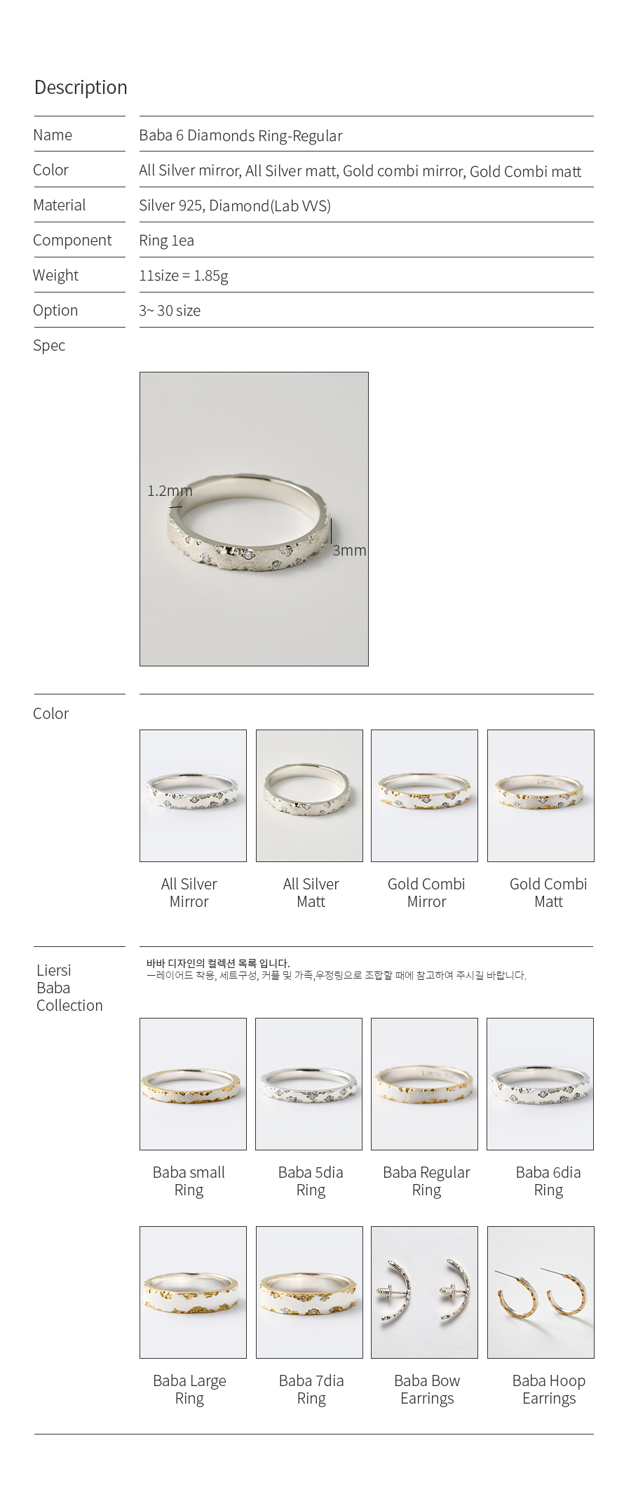 RLS01DM 바바 (BABA) 레귤러 반지 - 다이아몬드