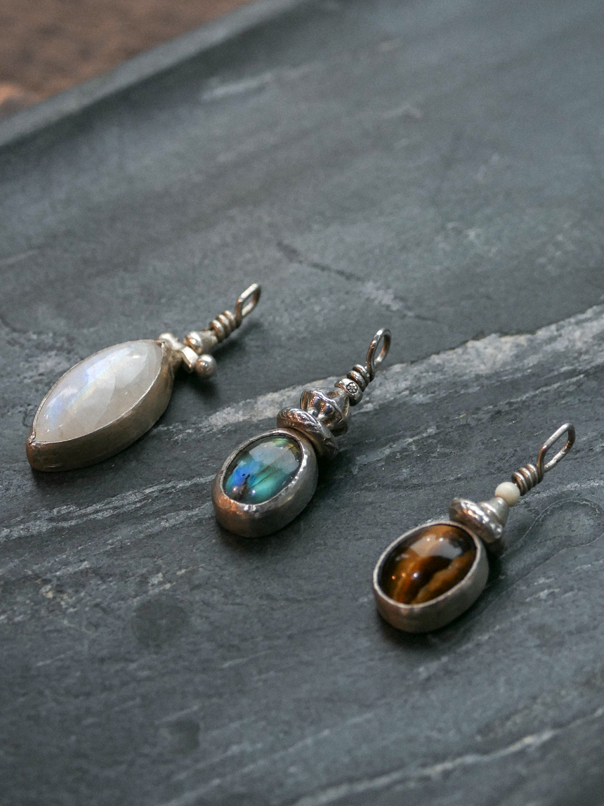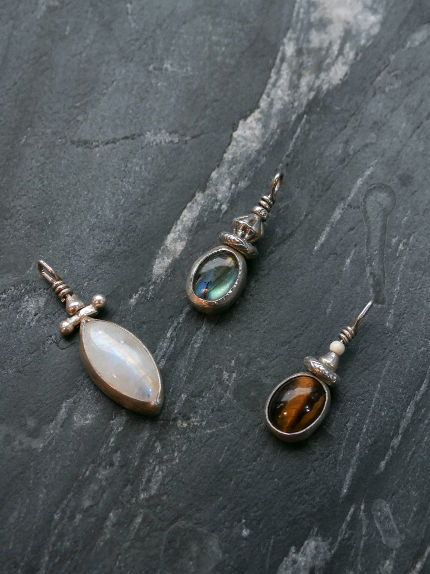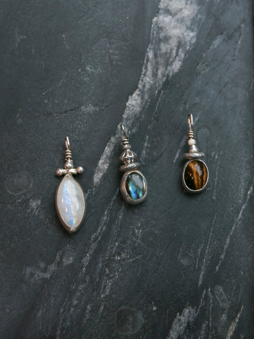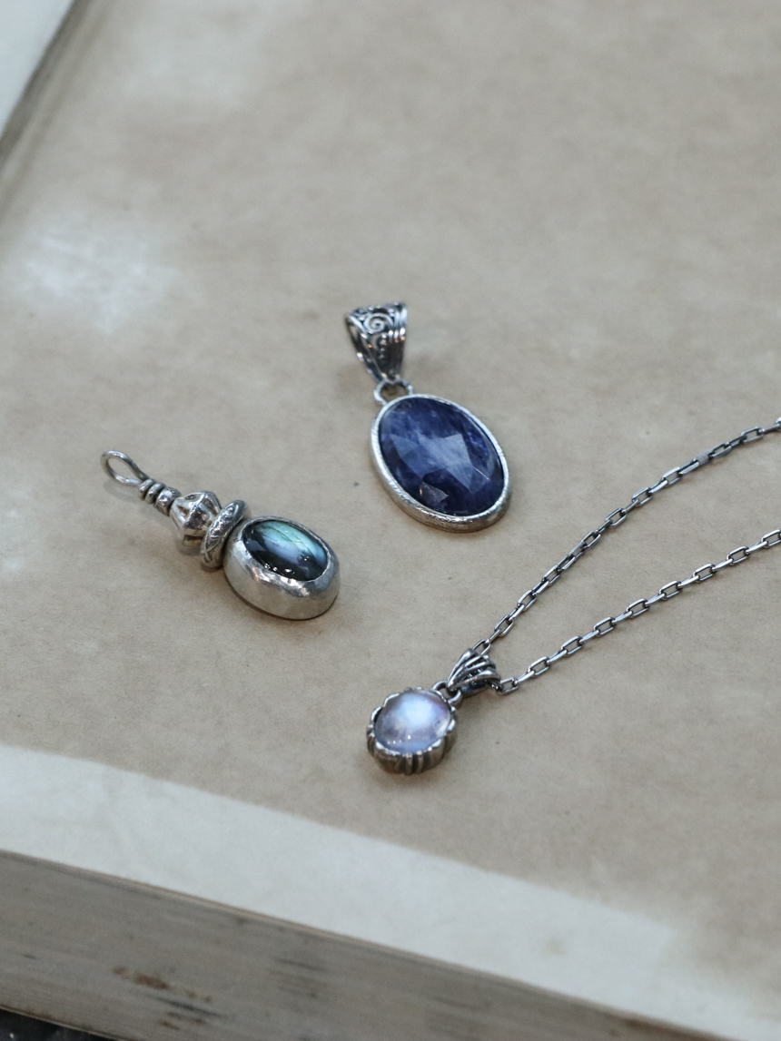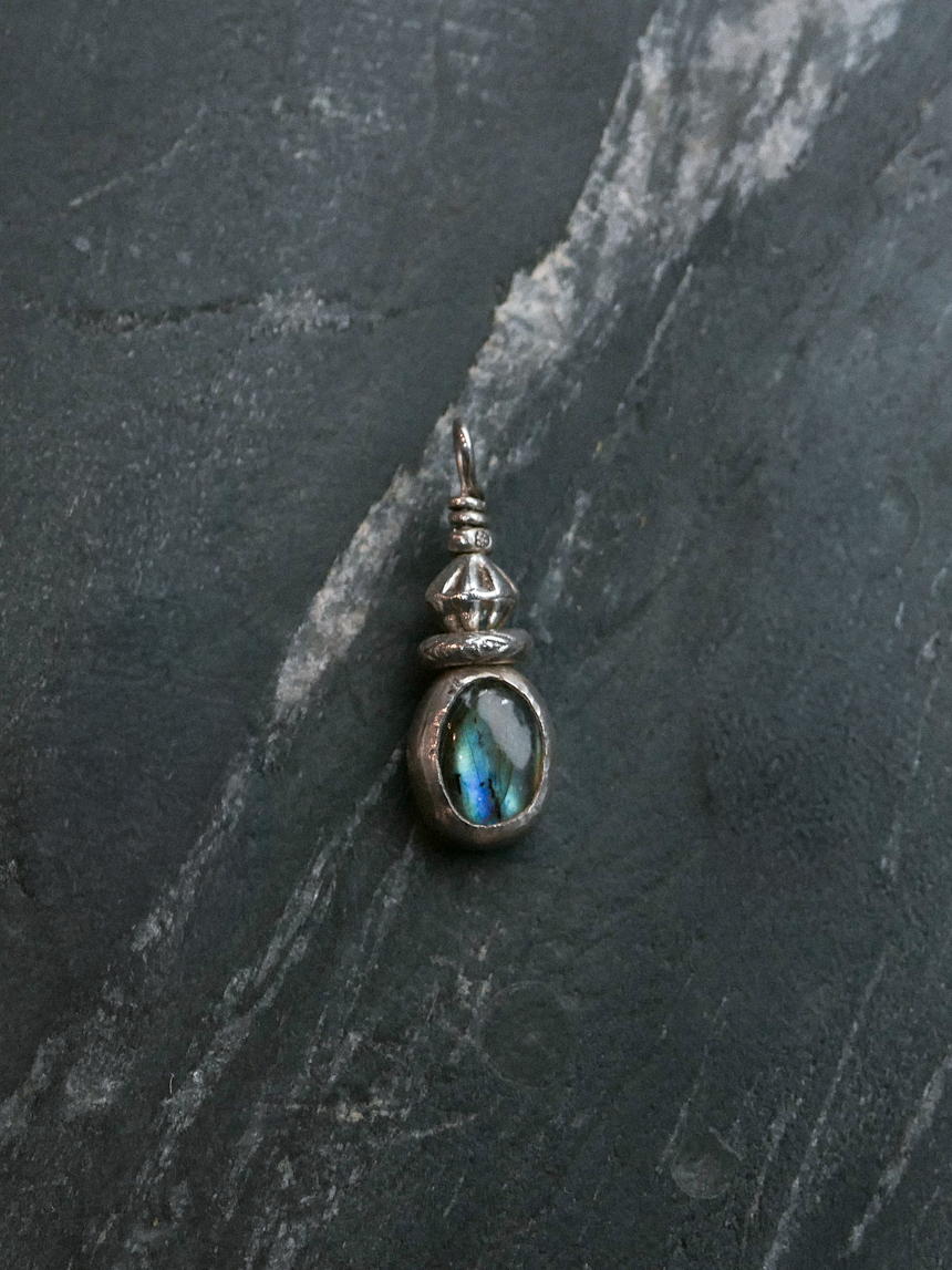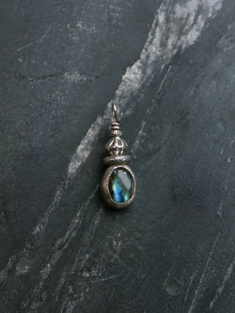 오로라 같은 푸른 빛의 래브라도라이트와 빈티지한 실버 세공이 조화를 이룬 핸드메이드 에스닉 펜던트