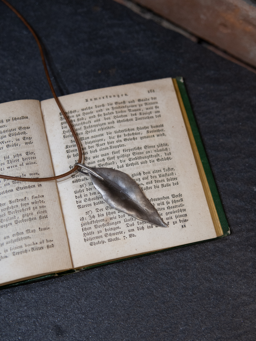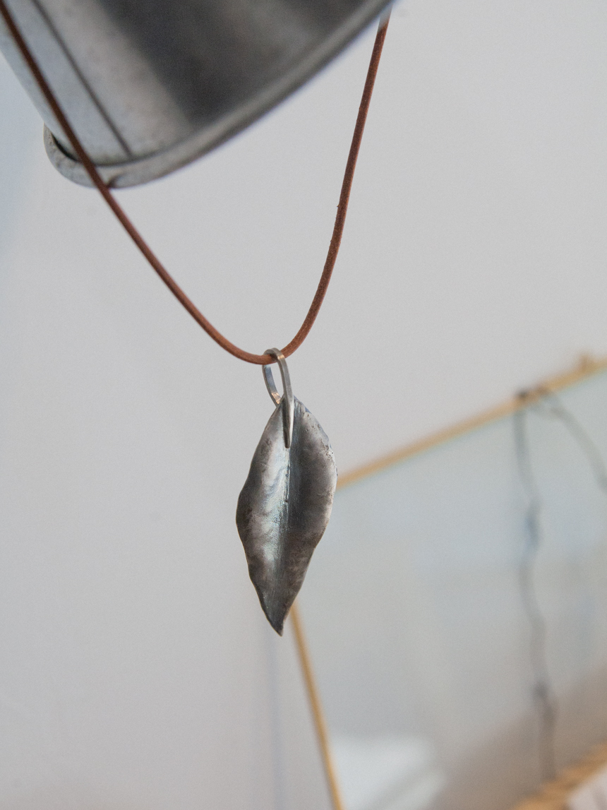 가죽줄 두께 2mm 줄 길이 67cm, 나뭇잎 세로 65mm 가로 25mm