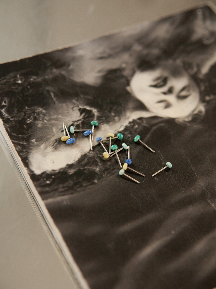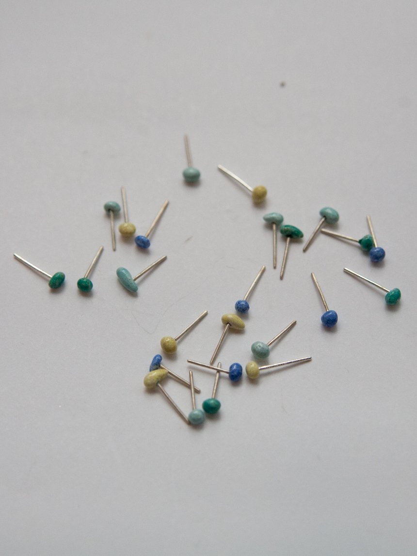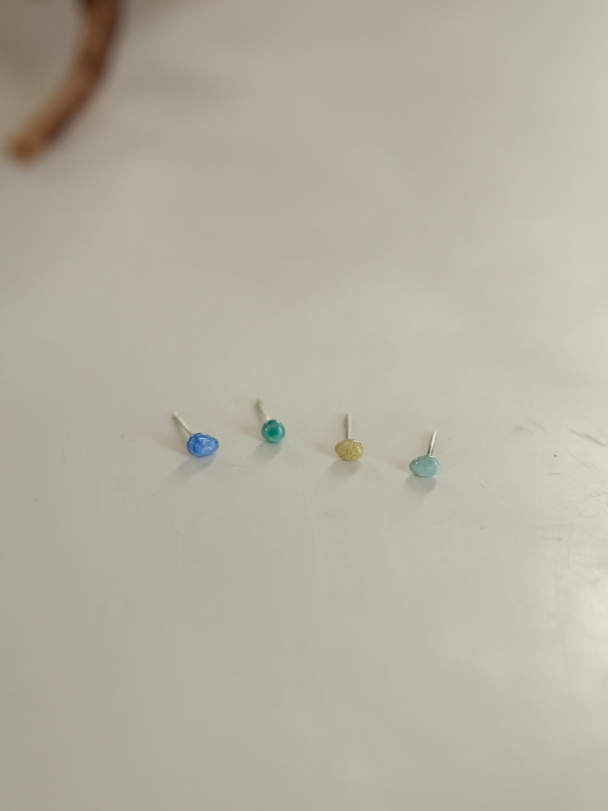 ECT07 99.9% 순은 칠보 돌멩이 미니 귀걸이 - 4 color