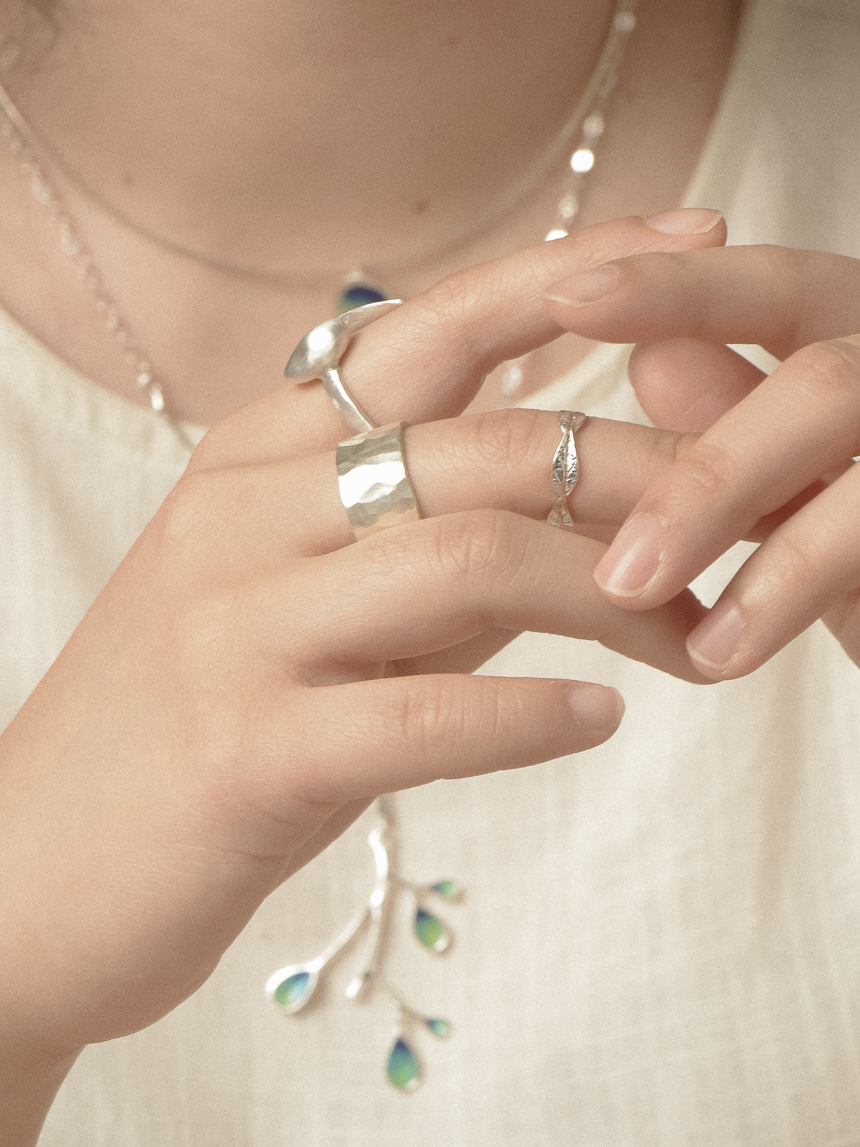 • 실버는 스크래치, 자연스러운 변색 등 착용자의 생활을 반영하는 인체 친화적인 주얼리 입니다.  일상 속 매일 함께하며 나만의 빈티지한  매력이 있는 실버를 만들어 보세요.