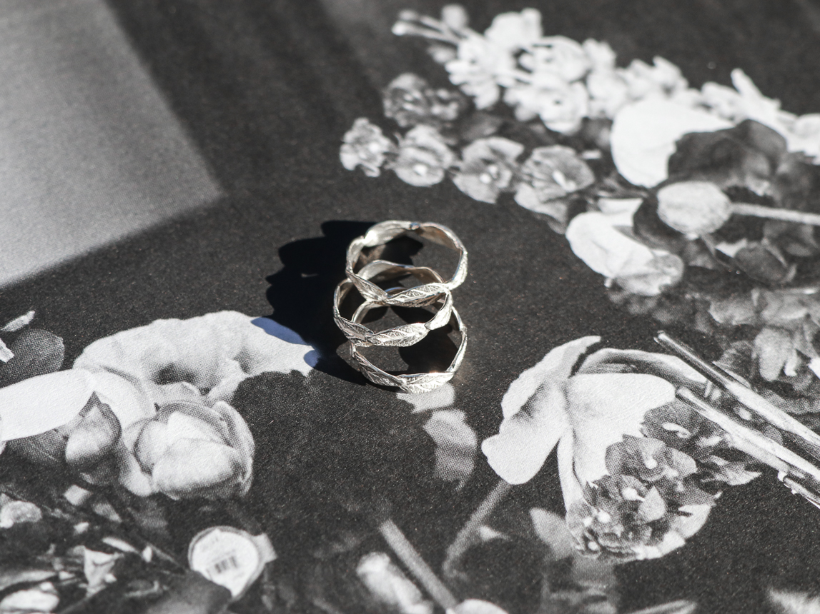 잎새가 하나하나 이어져서 마치 화관을 연상시키는 여성스러운 디자인 반지 입니다.