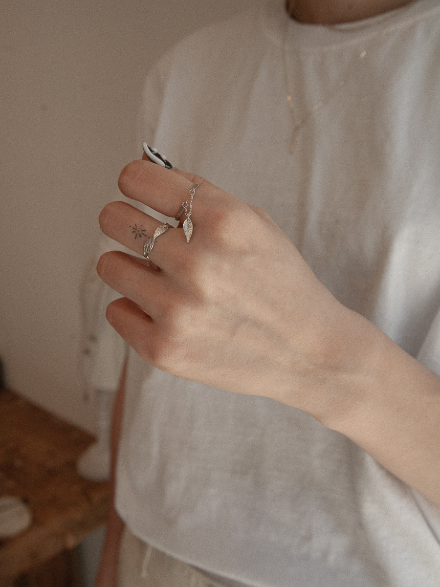 RCT35 나뭇잎나뭇잎 밴드 98% 순은 반지