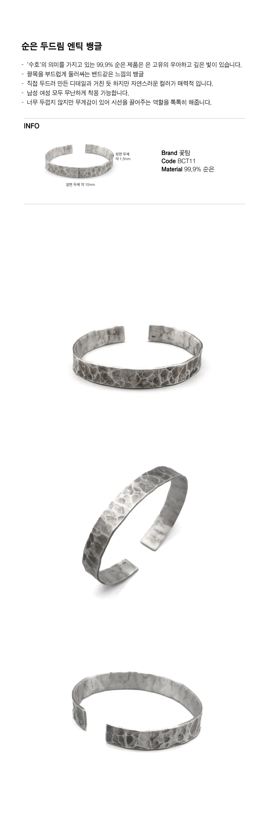 BCT11 99.9% 순은 두드림 엔틱 뱅글 - 10mm