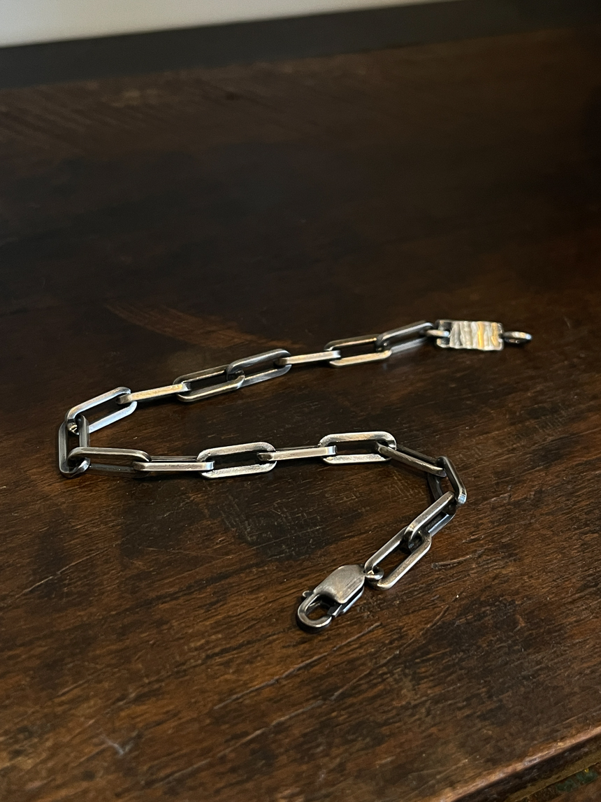 - 망치로 직접 두드린 참이 포인트로 들어간 심플한 체인 팔찌