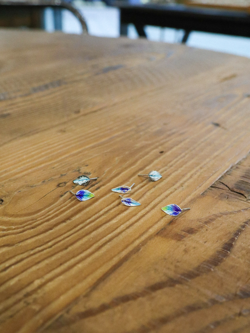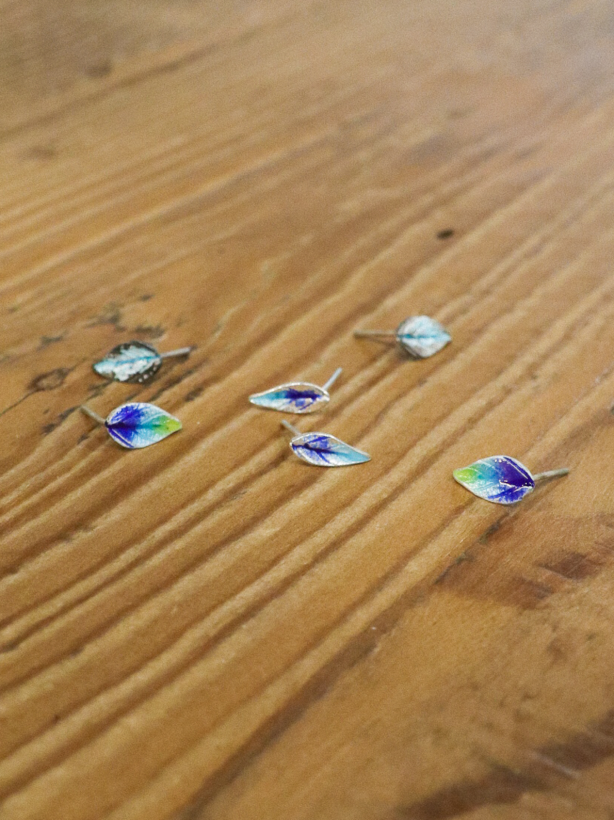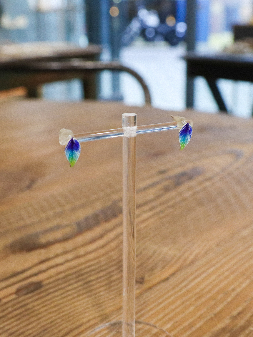- 꽃탐의 시그니처 모티브인 잎새에 칠보로 색을 내 독특한 느낌을 주는 귀걸이