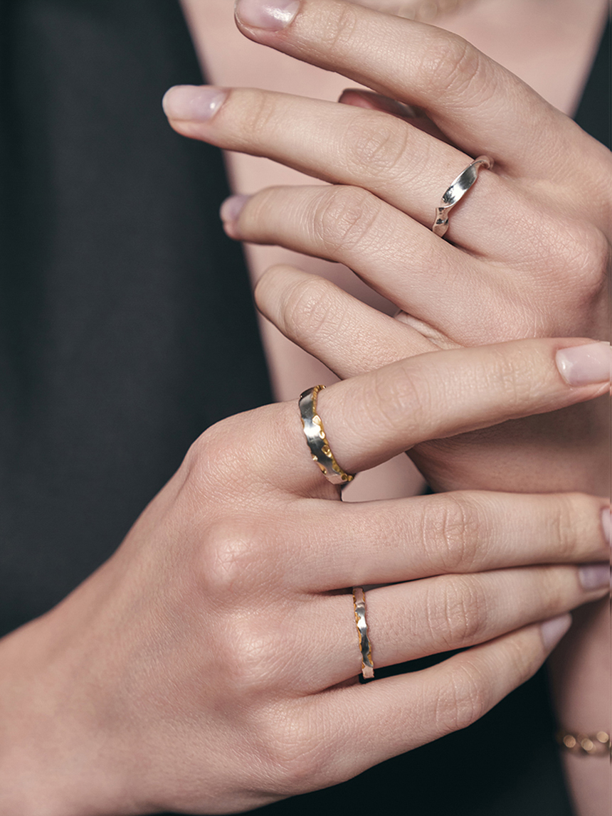 • 착용한 상태로 물이나 클렌징에 자주 노출시키는 것이 오히려 주얼리를 더 깨끗하게 유지하도록 도와주는 가장 좋은 관리 방법 중 하나입니다.