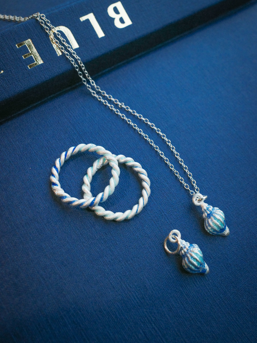 작은 소라에 칠보로 컬러를 내어 시원한 컬러감이 돋보입니다.