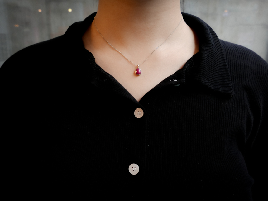 물방울 모양의 루비로 제작한 데일리한 목걸이
