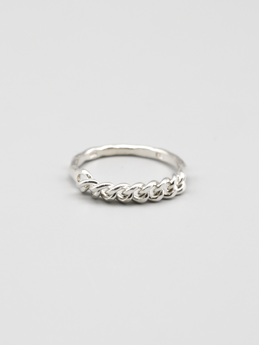 체인과 해머드 질감이 만나 독특한 조화를 이루는 실버 링