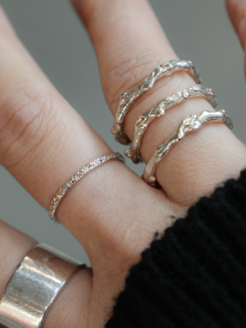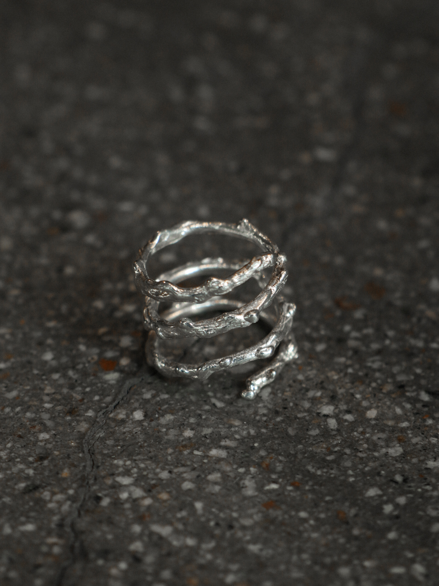 나뭇가지의 디테일을 꼬아 만든 독특한 반지.