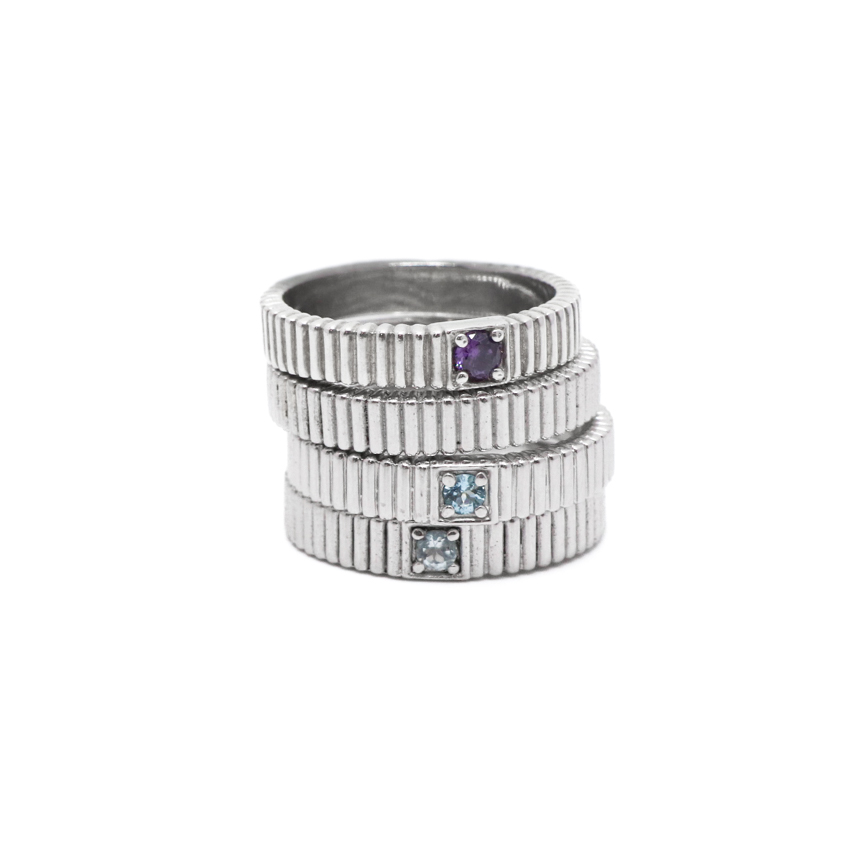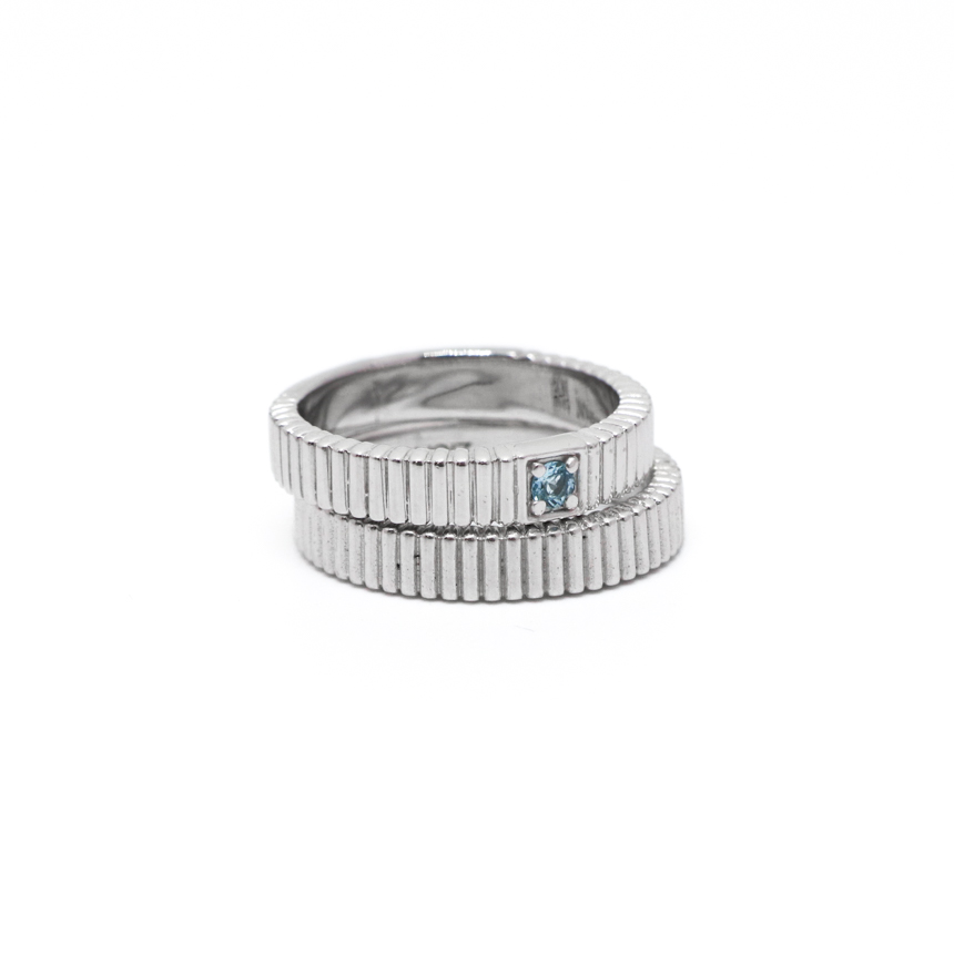 촘촘한 세로 무늬가 정갈한 느낌으로 조각된 탄생석 반지