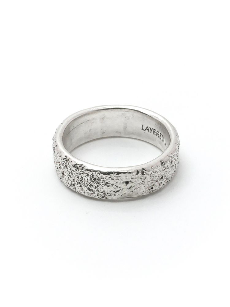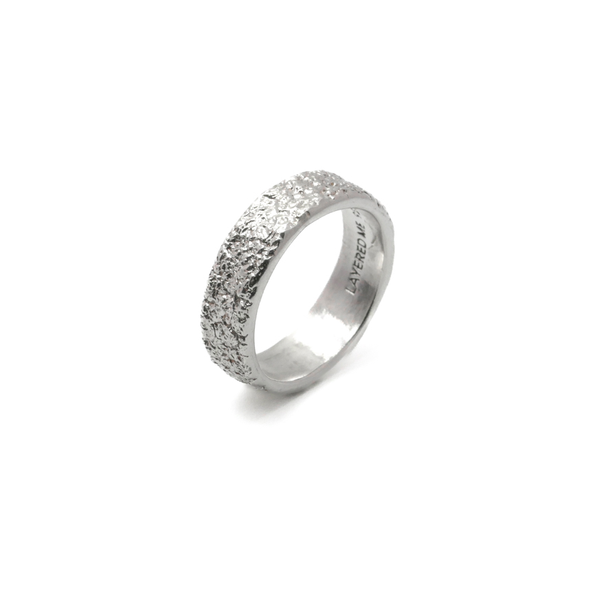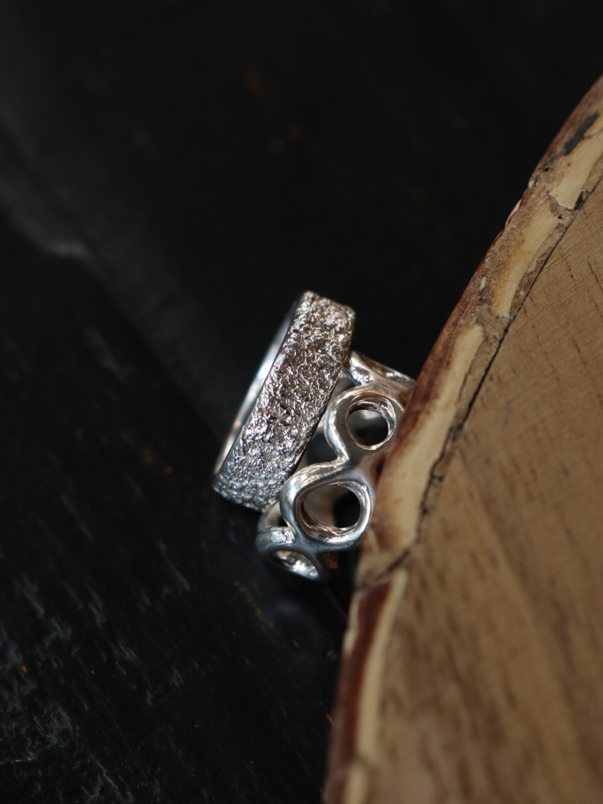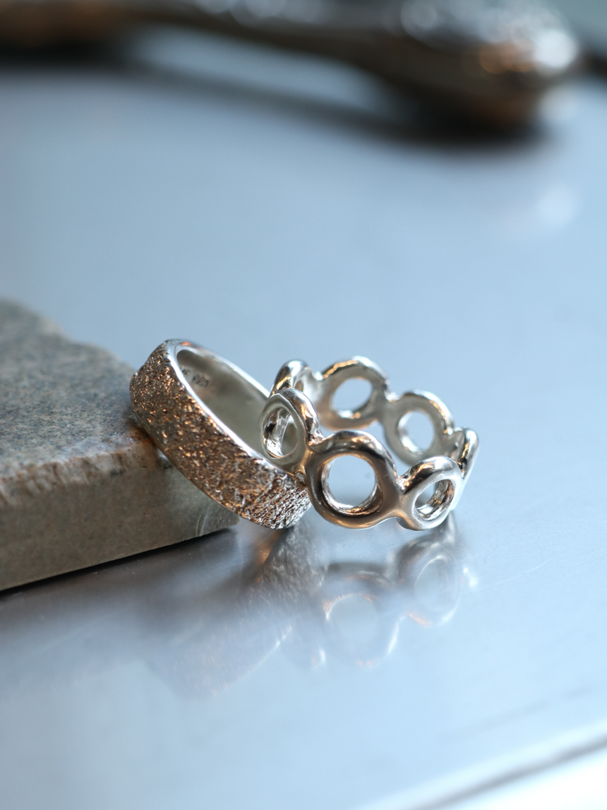 은의 단면에 돌의 표면을 닮은듯한 독특한 질감을 표현하여 포인트를 준 반지