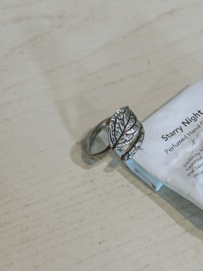 RCT39 잎새 넝쿨 엔틱조각 98% 순은 반지