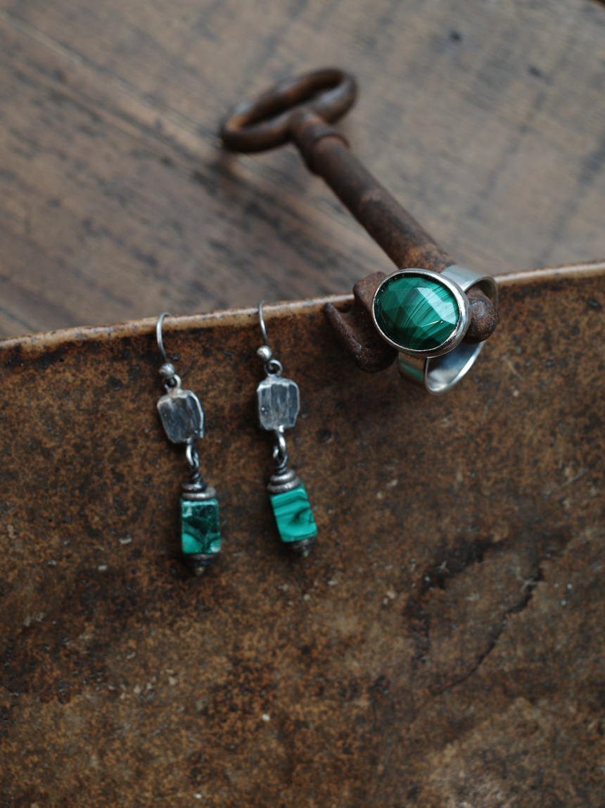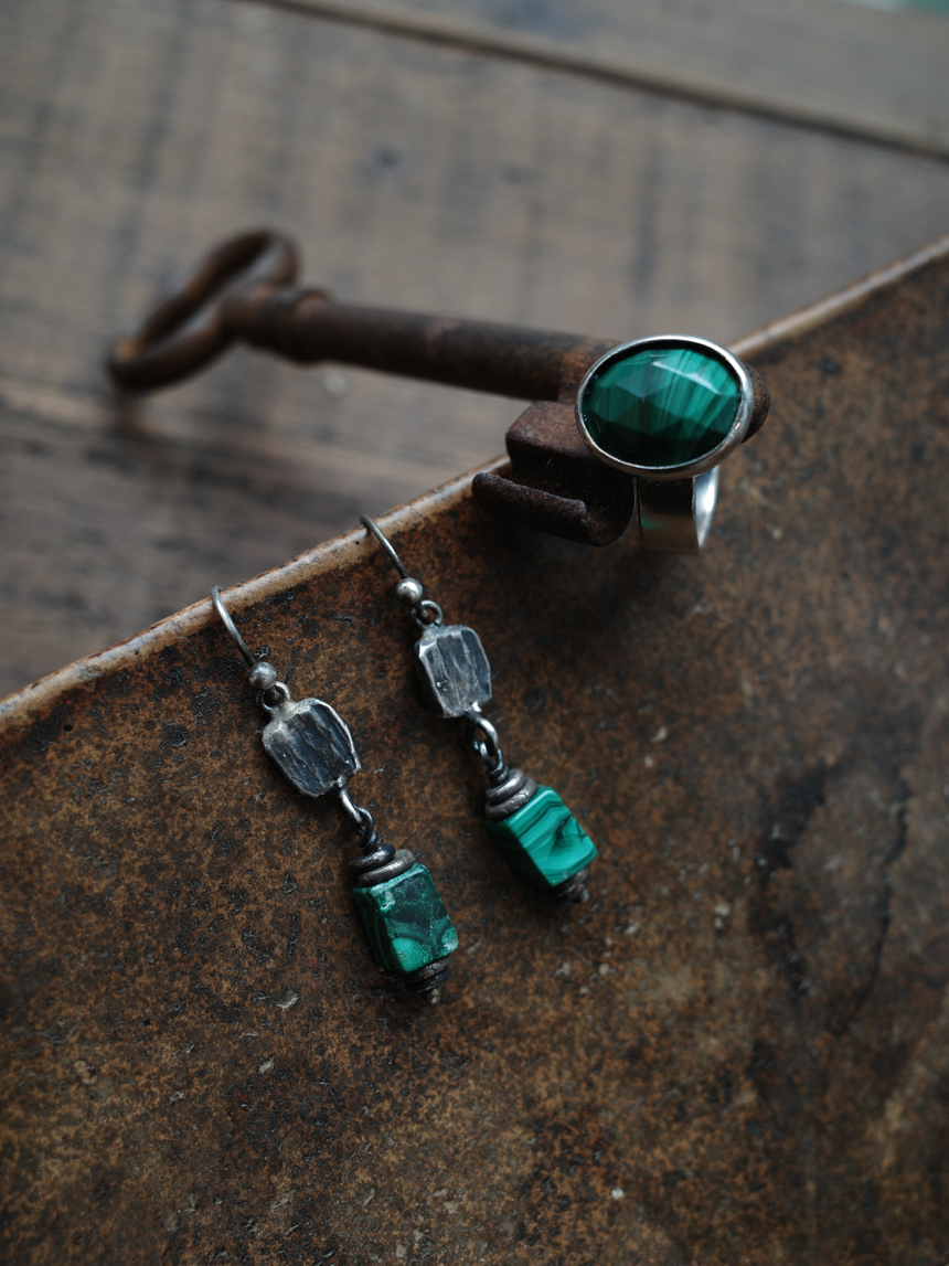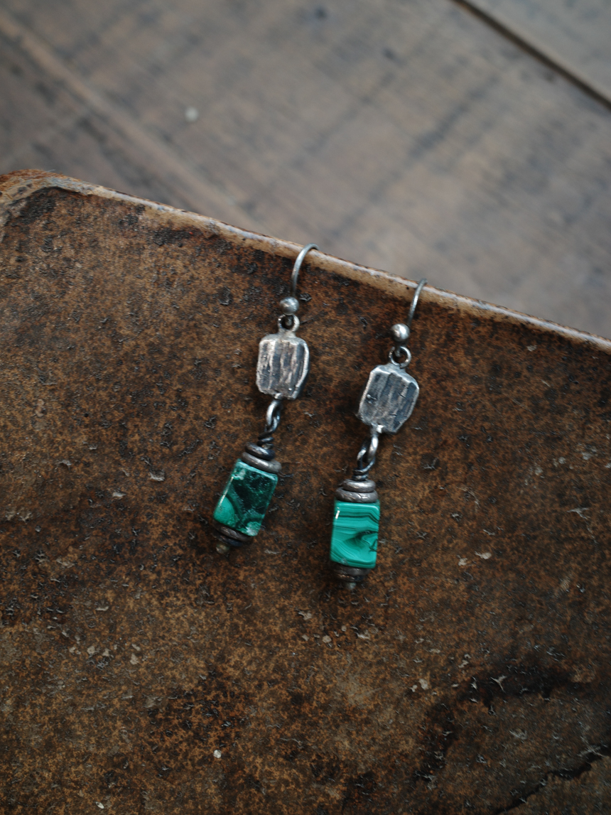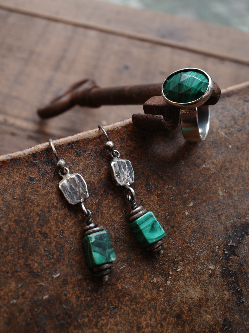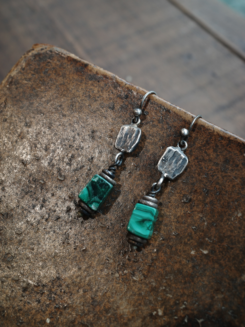 EBD14ML 말라카이트 드롭 엔틱 귀걸이