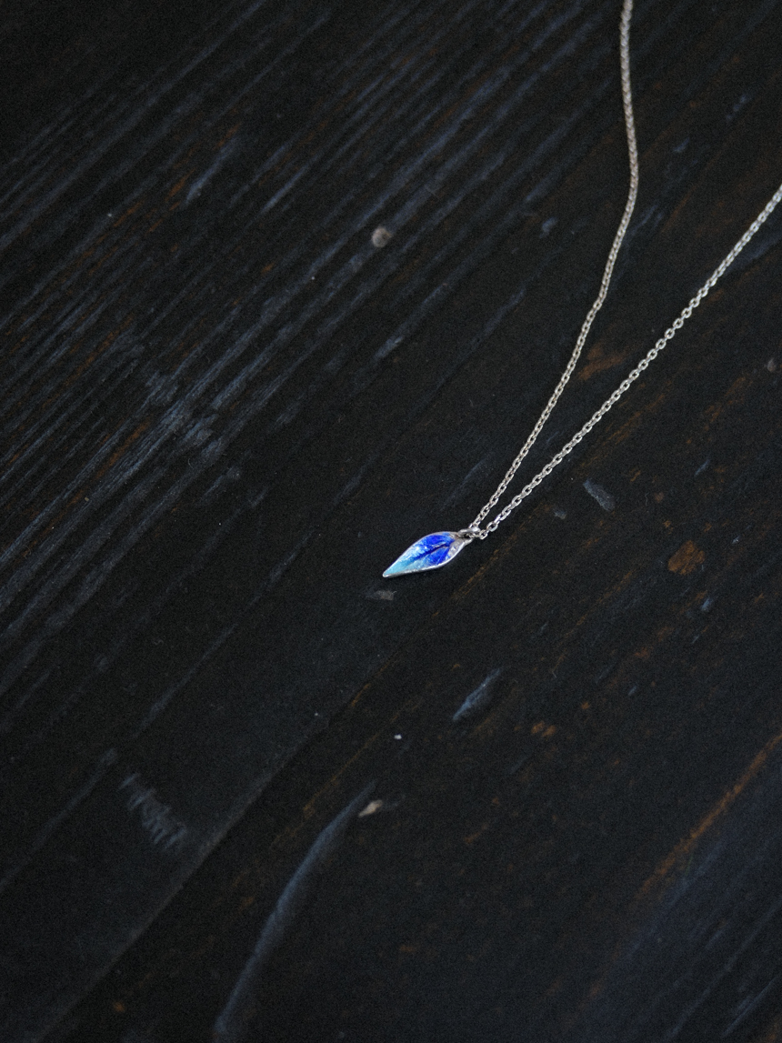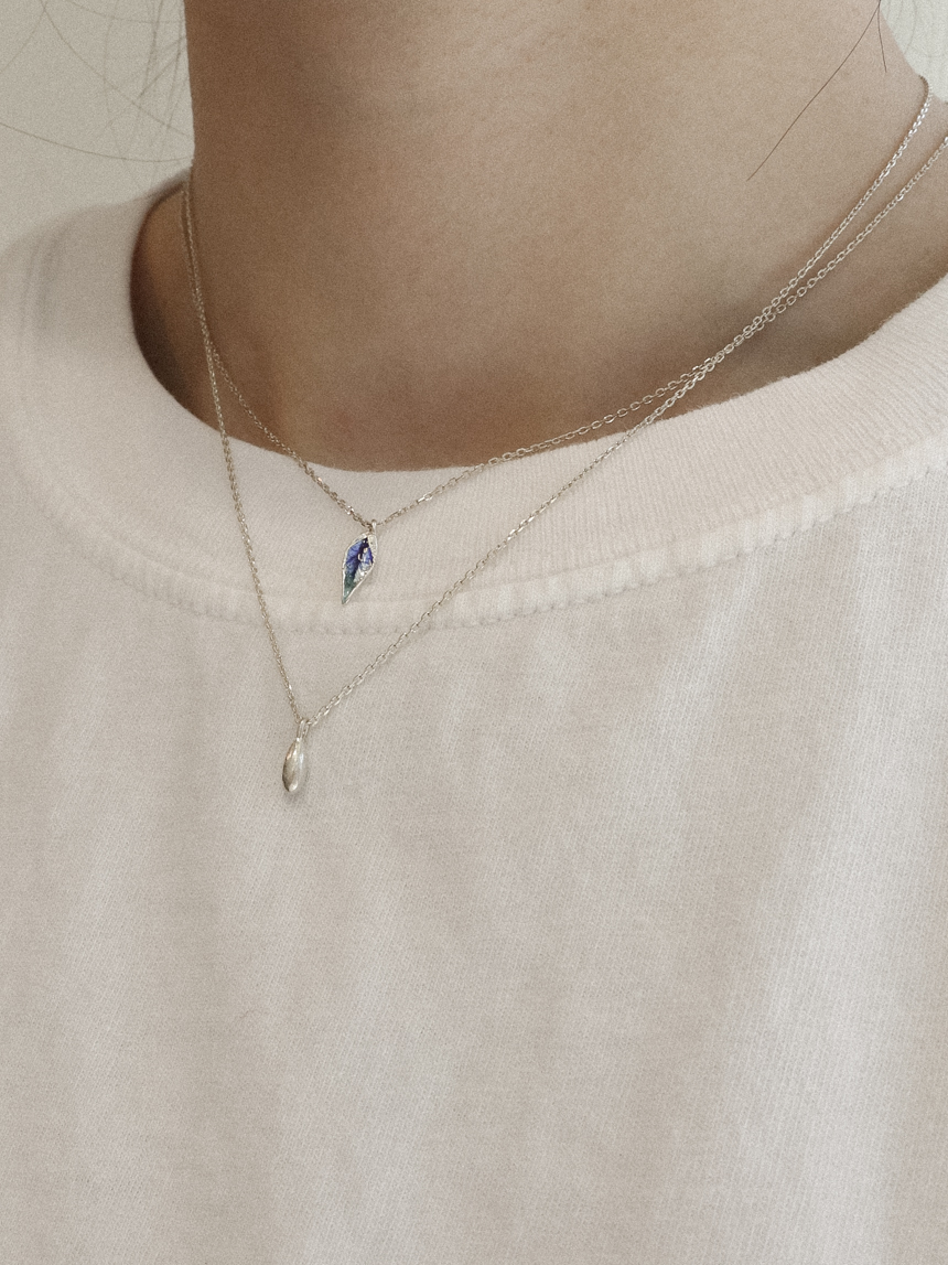 꽃탐의 시그니처 잎새에 청량한 컬러감의 칠보작업으로 데일리하면서 포인트가 될 수 있는 목걸이.